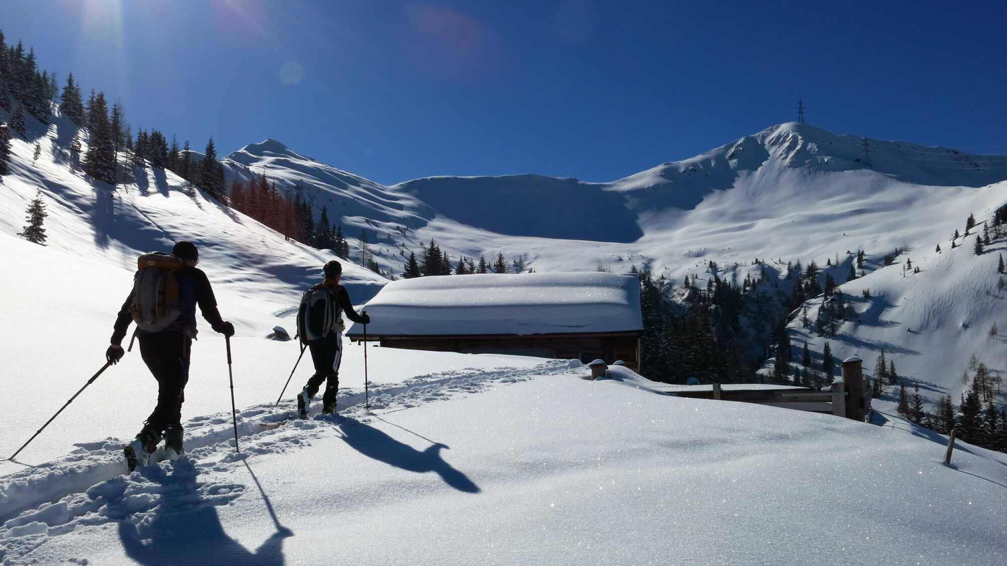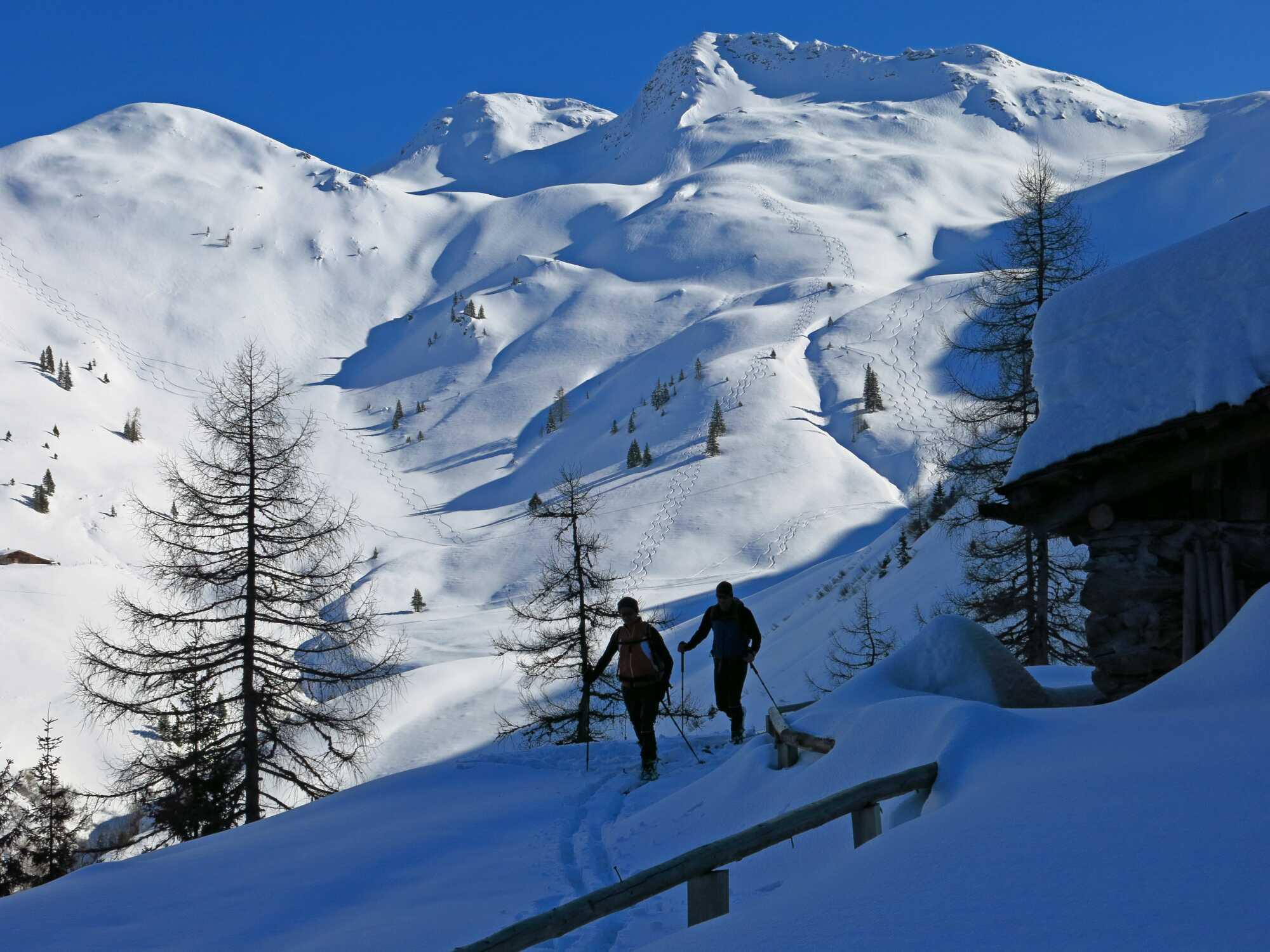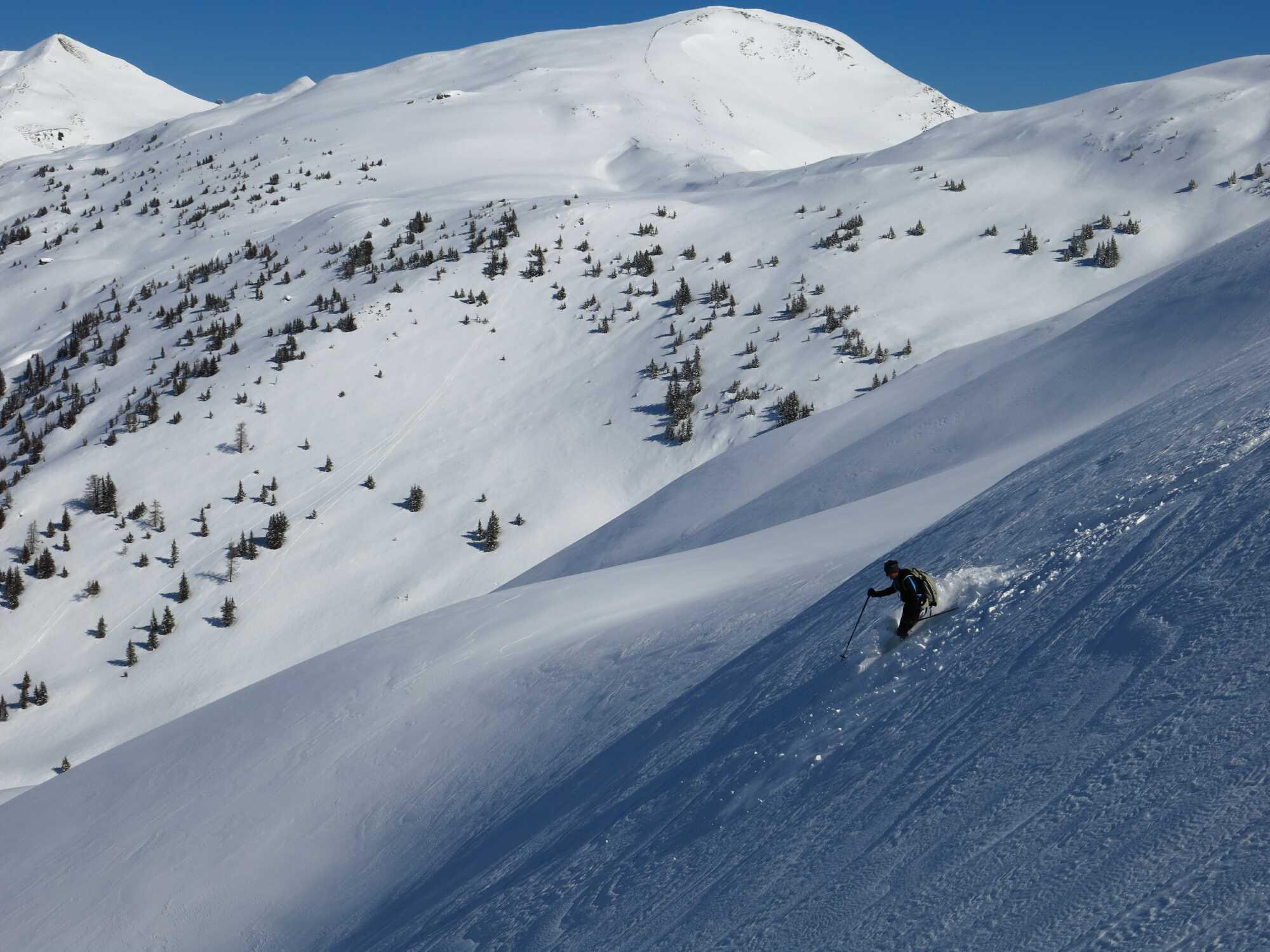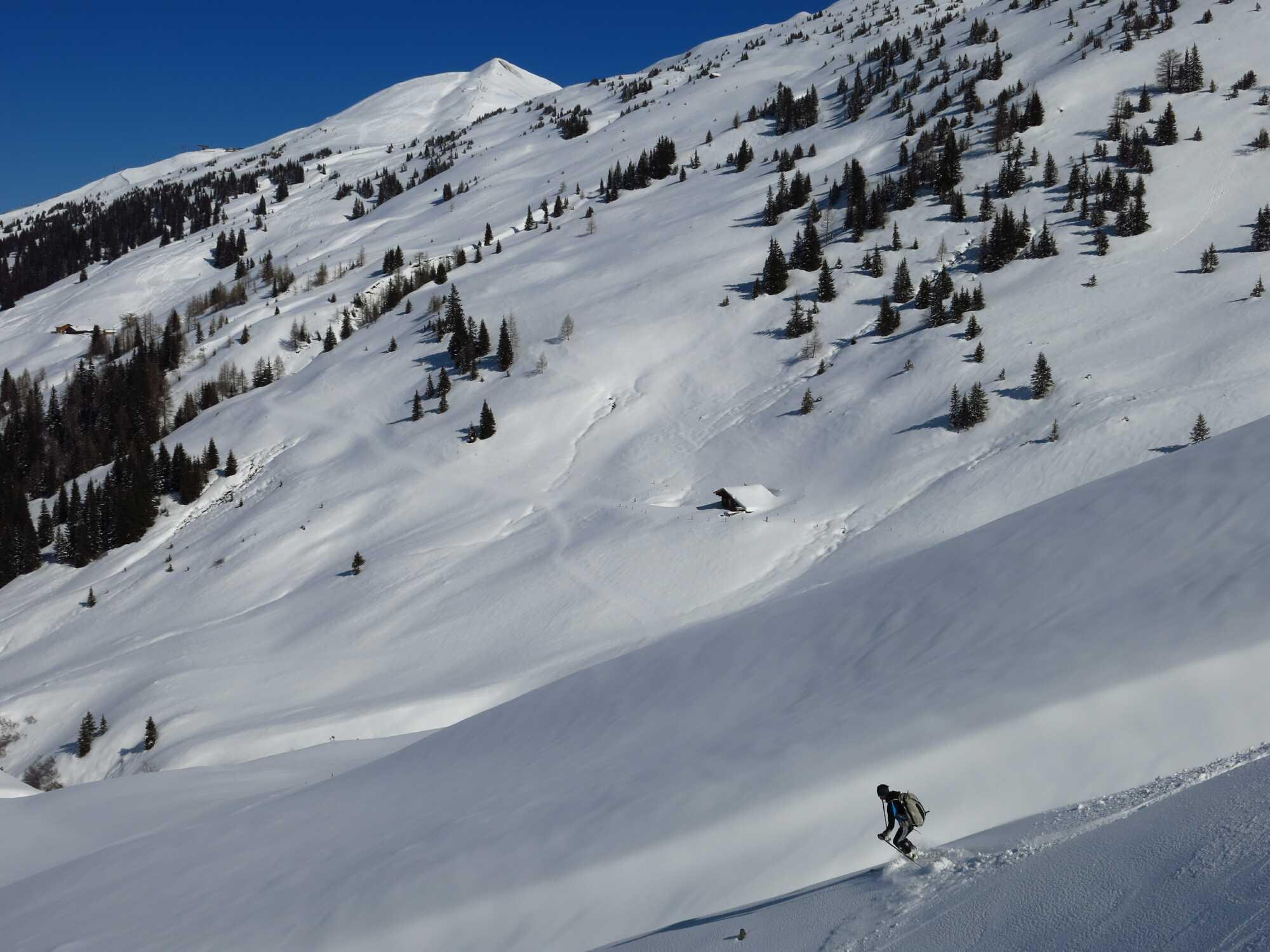 Vom Schwarzachengraben (1260) über Huber Grundalm und Huber Hochalm (1734) auf den Medalkogel (2123). Abfahrt auf der NO-Seite bis nahe Polzalm (ca. 1750). Wiederanstieg zum Hochkogel (2249). Abfahrt N-seitig zur Polzalm (ca. 1700), Rückwanderung über Kegerlalm zur Huber Hochalm und Abfahrt zurück zum PP.