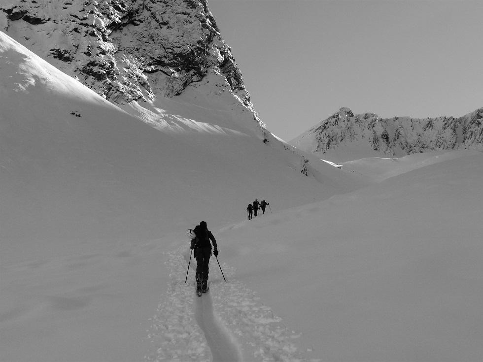 Anstieg von Stockham über die Kreealm, Kreekar zum Schöderhorn. Abfahrt analog dem Anstieg über die weiten Hänge des Kreekars.