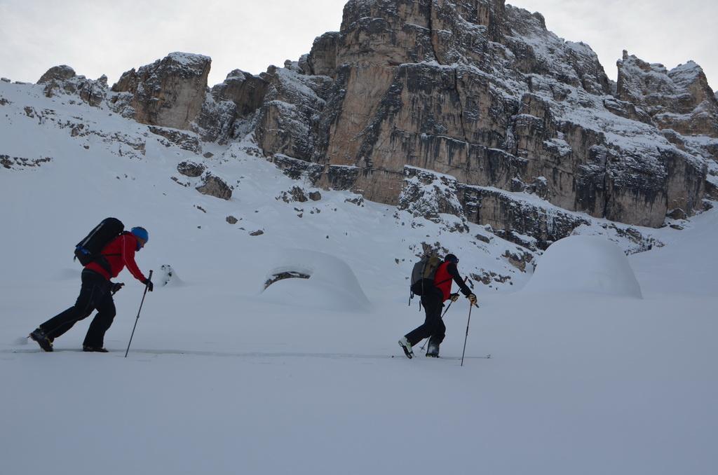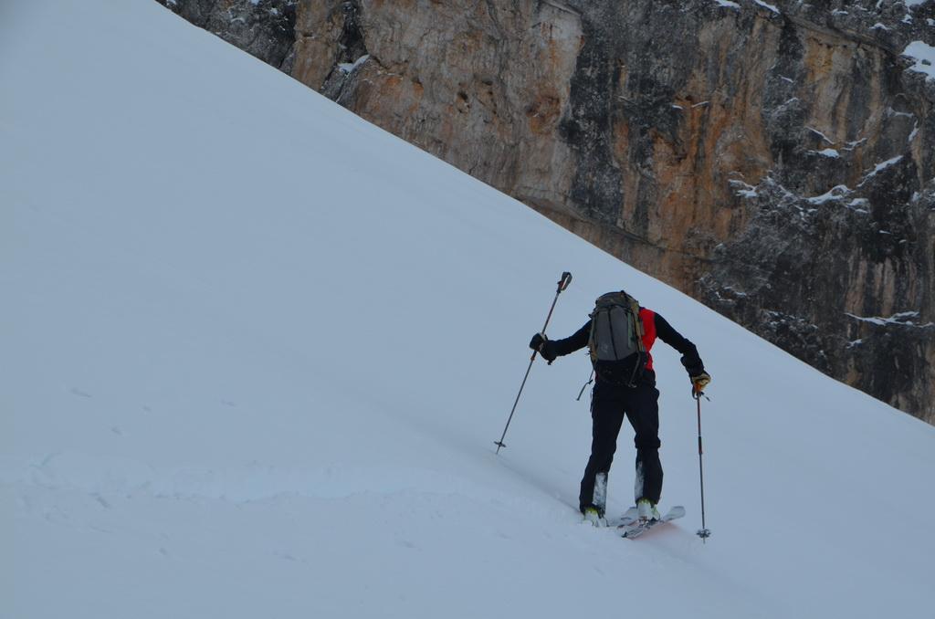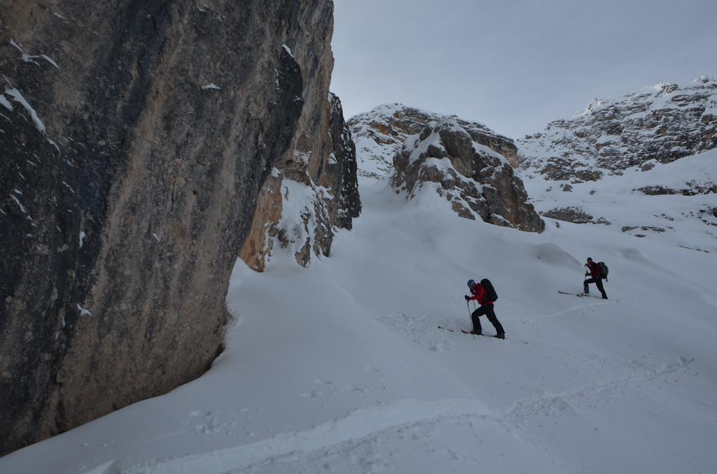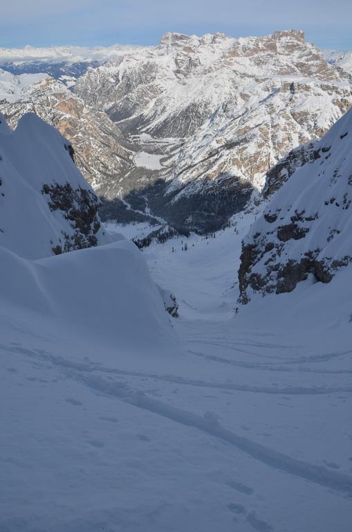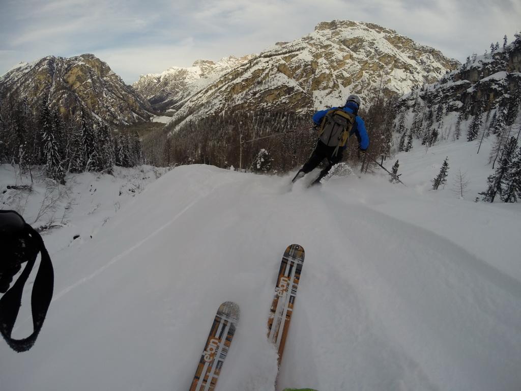 <p>Auch heute nahezu perfekte Bedingungen in den Dolomiten. Die Spurarbeit hat sich ausgezahlt, auch oder gerade deshalb, weil wir unser Tagesziel heute nicht ganz erreicht, bzw. ca. 30hm unter der Scharte abgebrochen haben. Bis dorthin eine durchwegs gut gesetzte Schneedecke mit ca. 10-20cm Pulverschneeauflage. Die letzten Meter vor der Scharte konnte man dann aber immer deutlicher den Windeinfluss erkennen, wir waren uns der Lage nicht 100% Sicher, vl. lag es auch daran dass es in letzter Zeit vermehrt negative Schlagzeilen bezüglich Lawinen gab, und so haben wir uns zum Abbruch entschlossen. Bei einem kurzen Rückblick beim Abfahren konnten wir dann auf der Scharte andere Kollegen erkennen, die von der anderen Seite gekommen sind. So hatte der Abbruch nebenbei auch noch den positiven Aspekt dass wir die ersten bei der Abfahrt waren, was speziell im oberen engen Teil schon der Hit war. Alles in allem eine großartige Tour in wilder Dolomitenlandschaft, bei der wir vom Umkehrpunkt bis zum Auto perfekten Pulverschnee hatten. Allerdings soll bereits Morgen im laufe des Tages erneut bis zu 60cm Neuschnee kommen und die Lawinengefahr steigt wieder auf 3, bzw. in einigen Gebieten sogar auf 4 an..</p>