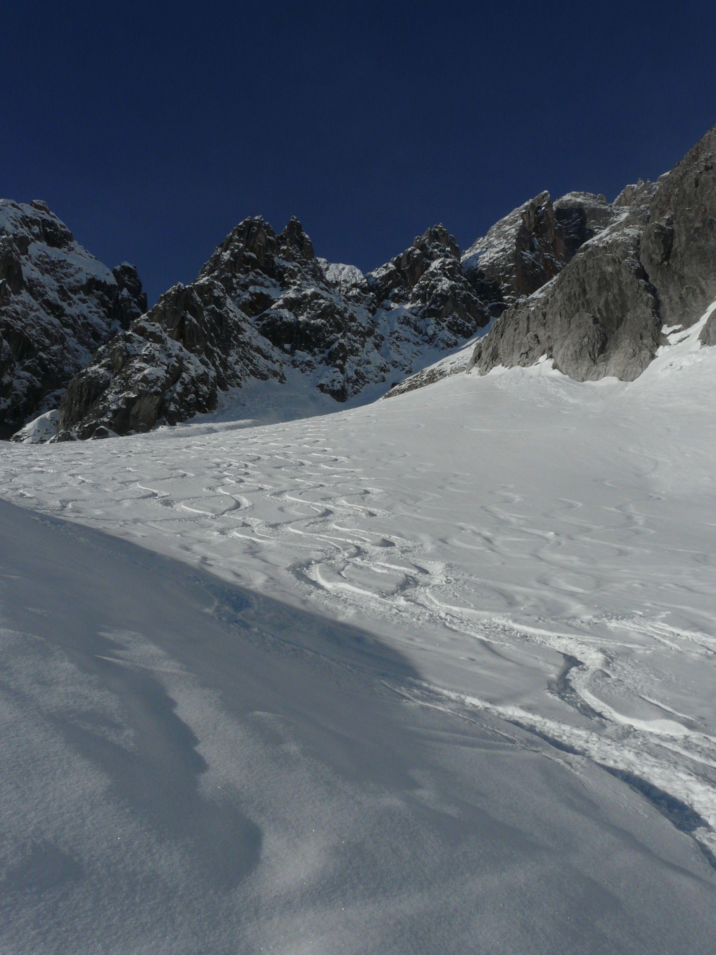 Vom Rastplatz bis zum Parkplatz gut fahrbarer Pulverschnee auf tragenden Altschnee.