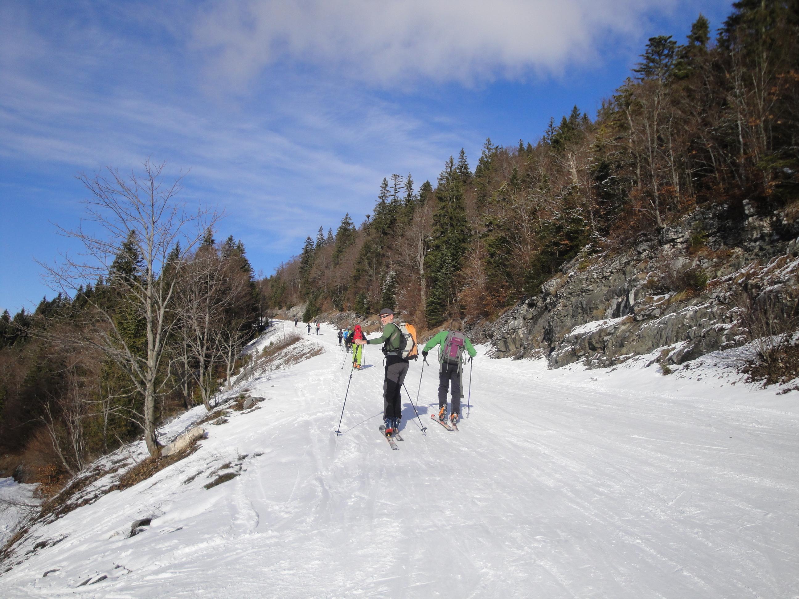 Aufstieg von der Talstation der Loserlifte über die teils apere Schitourenroute zur Loserhütte. Weiter am Augstsee vorbei auf den Greimuth. Kein Liftbetrieb im oberen Bereich! Etwa 15cm Pulverschnee auf einem Schmelzharschdeckel. Die letzten Meter zu Fuß auf den Gipfel. Erschreckend wenig Schnee im Toten Gebirge. Abfahrt ab der Loserhütte auf der beschneiten (teilweise eisigen) Schiabfahrt bis ins Tal möglich.