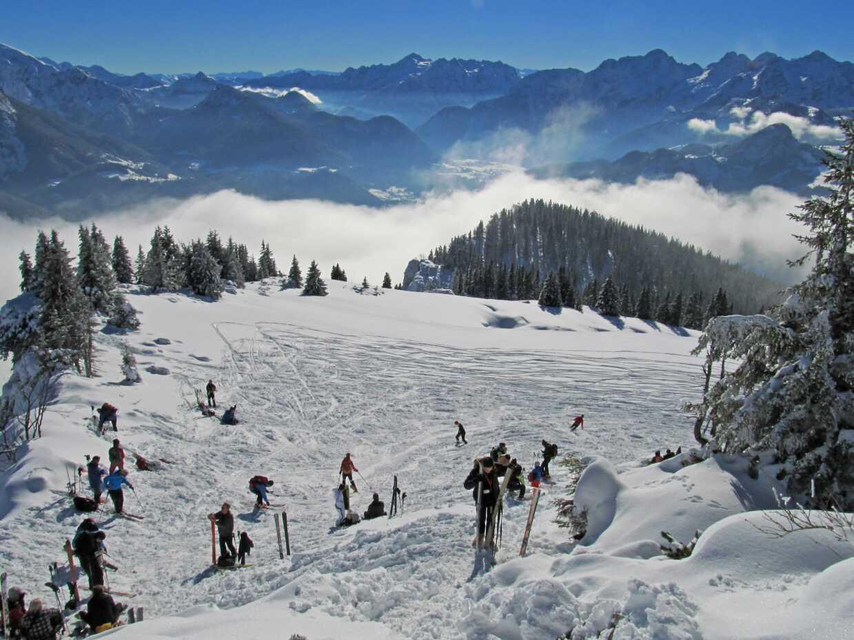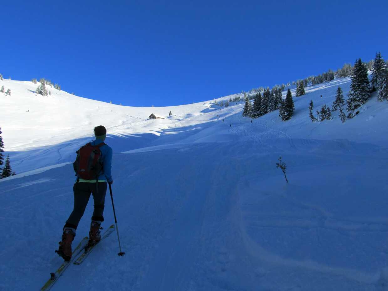 Schneelage: Im Heutal ca. 30cm Pulver, Hochalm ca. 60-80cm, gesetzter Untergrund. Abfahrt oben ohne Probleme, Reichenhaller Hang einige Steinkontakte.