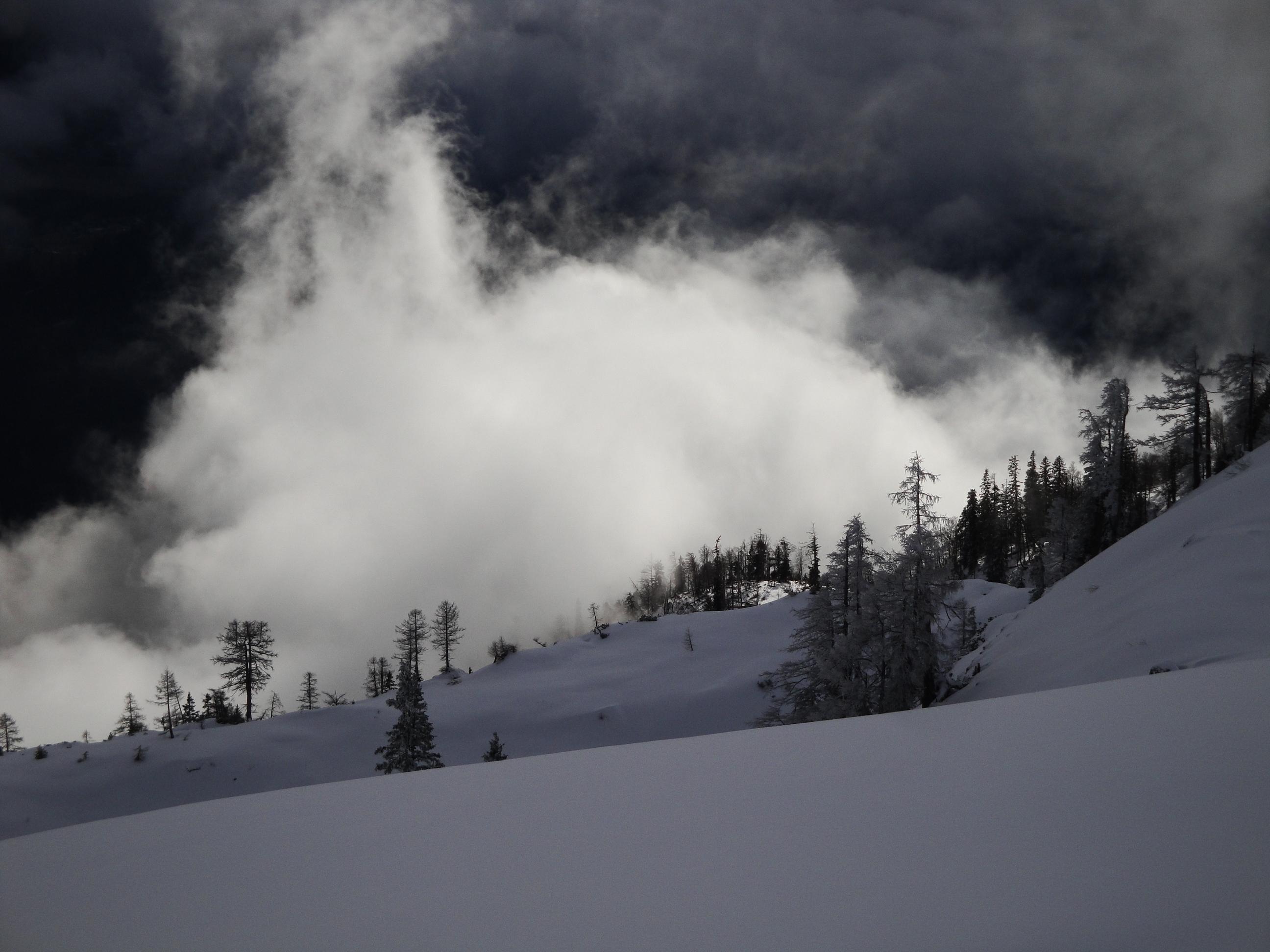 Schitourenroute zur Loserhütte ist praktisch schneefrei. Wenn man das Verbot, die Piste nicht für den Aufstieg zu benützen befolgt, muss man die nicht geräumte Loserstraße aufsteigen. Ab dem Augstsee gibt es etwa 20cm teilweise festen Neuschnee (Pulver). Schidepot 70 hm unterhalb des Gipfels (zu wenig Schnee für den weiteren Aufstieg). Abfahrt über die Piste bis zum Parkplatz bei den Loserliften möglich. Am Gipfel windstill. Hochnebelartige Bewölkung mit einer Obergrenze von etwa 1900m und einigen Lücken.