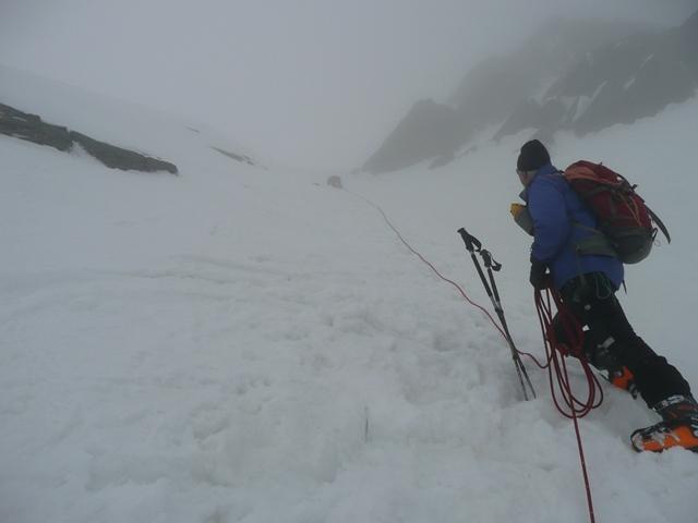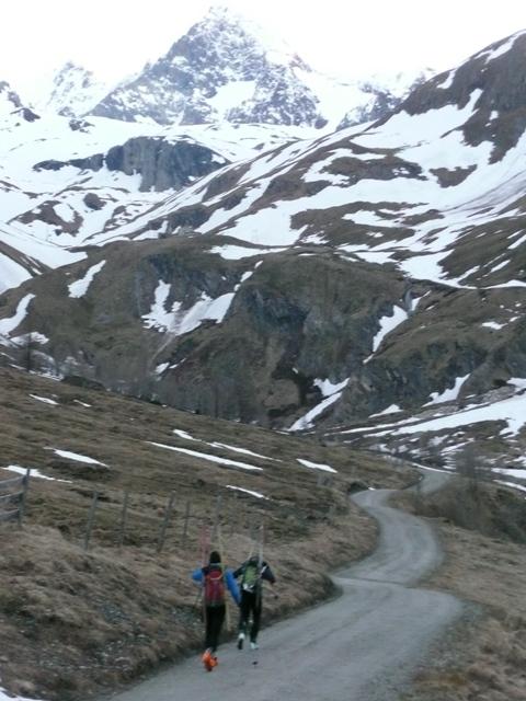 Beim Abstieg wurde es leider nebelig. Endlich wieder beim Skidepot begann eine lange sulzige Abfahrt (leider kein perfekter Firn). Alles in allem aber ein schöne, laaange Abschlusstour ;)