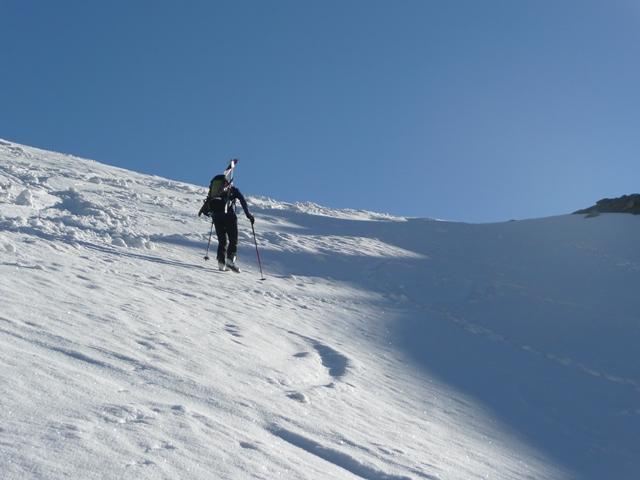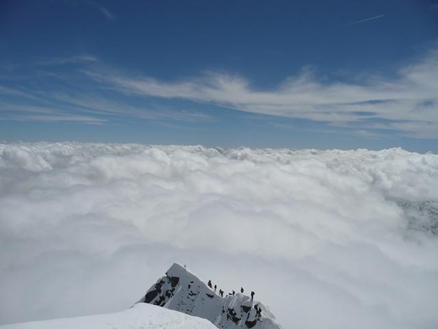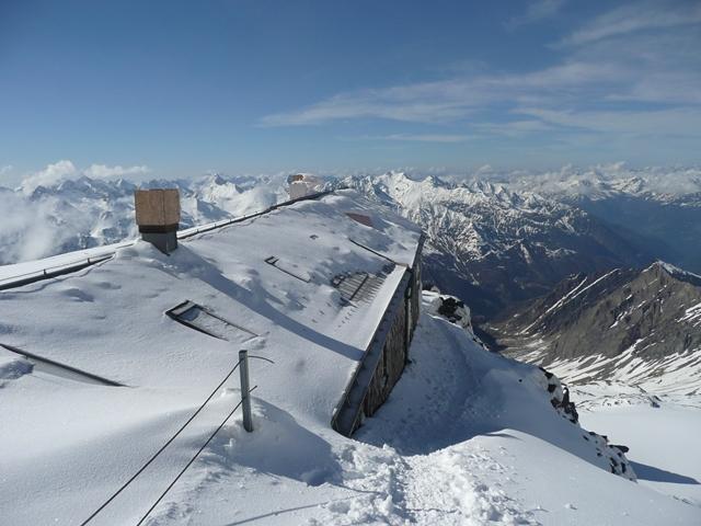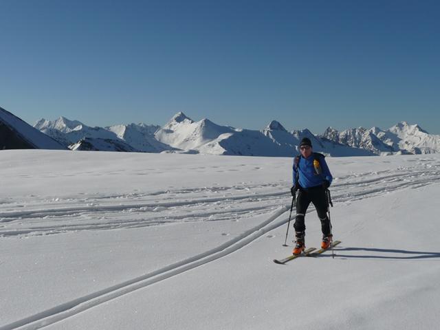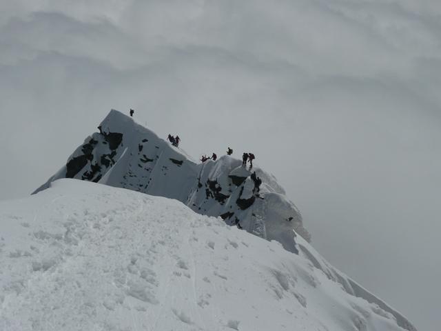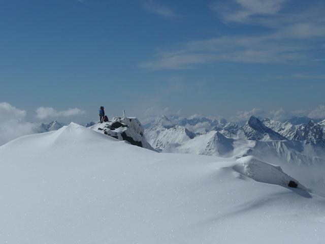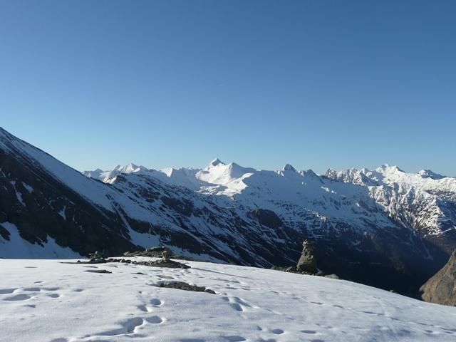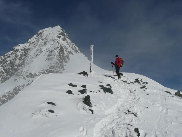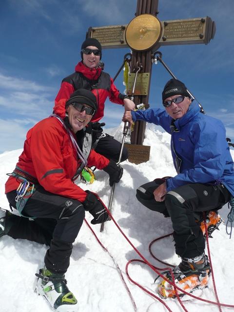 Aufstieg vom Lucknerhaus (1920m) in Richtung Stüdlhütte. Ungefähr eine dreiviertel Stunde mussten wir die Schi tragen, dann gehts auf einem harten Harschdeckel Richtung Ködnitzkees. Bei traumhaften Wetter erreichten wir die Adlersruhe. Der Gipfelgrat war wie erwartet gut besucht und es ging etwas langsamer voran. Schließlich standen wir doch noch auf dem ausgesetzten Gipfel (3798m).