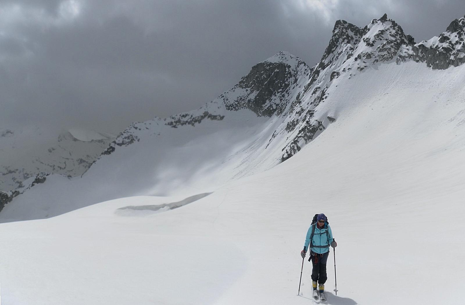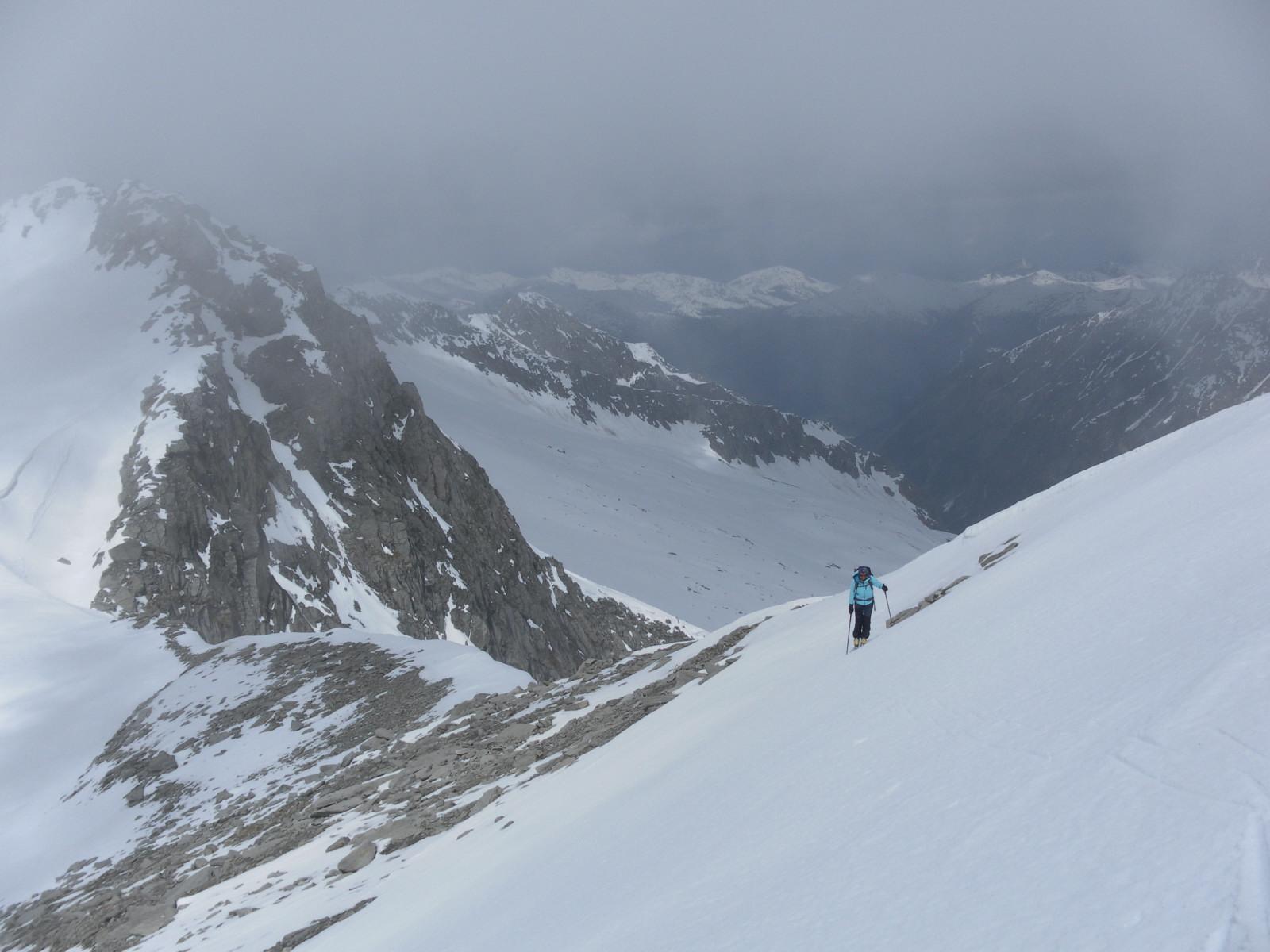 Dauernebel und Höhensturm verhinderte während unseres Aufenthaltes allen Großvenedigeraspiranten ihre Zielerreichung, Alternativen ausgeschlossen! Wir finden täglich wunderbare Ziele - Keeskogel, Bachmayrspitze, Gamsspitzl, Pillewizer, Kleinvenediger, Schlieferspitze. Ein wenig Pulver auf harschiger Unterlage in Gipfellagen über 3000m, ansonsten Sulz in allen Qualitäten. Die Spalten sind gut eingeschneit, der Gletschersee "ehemalige türkische Zeltstadt" trägt nicht mehr sicher.