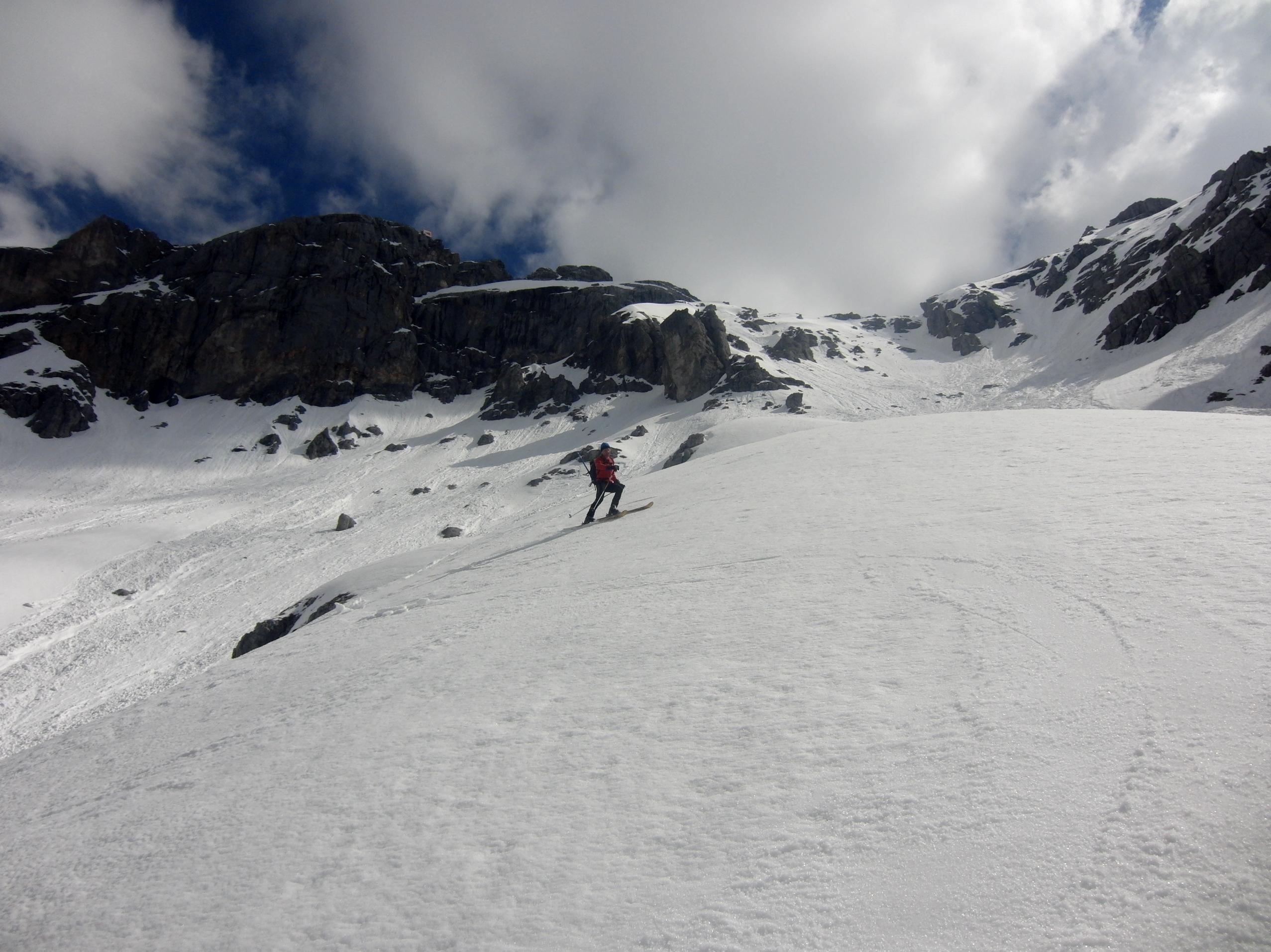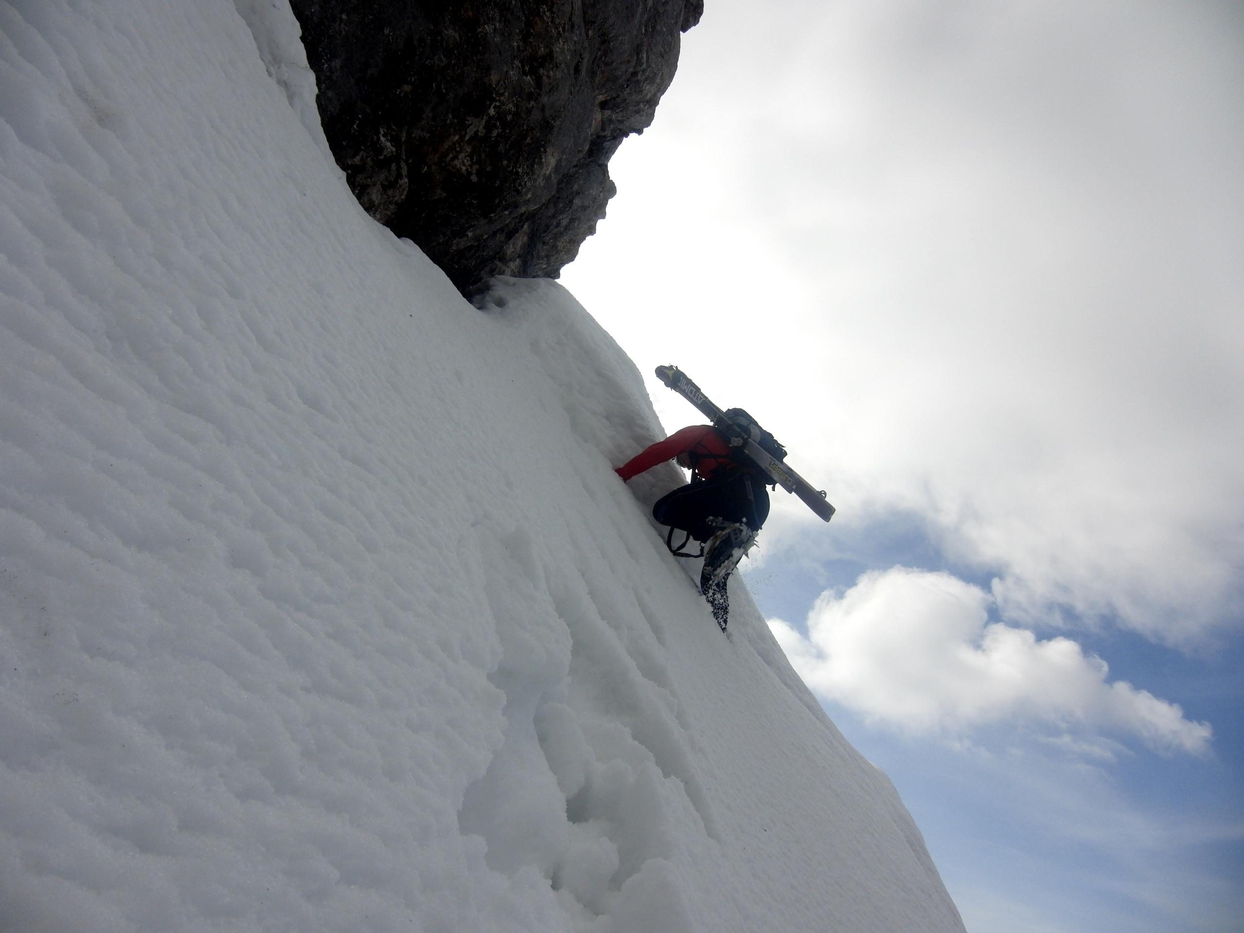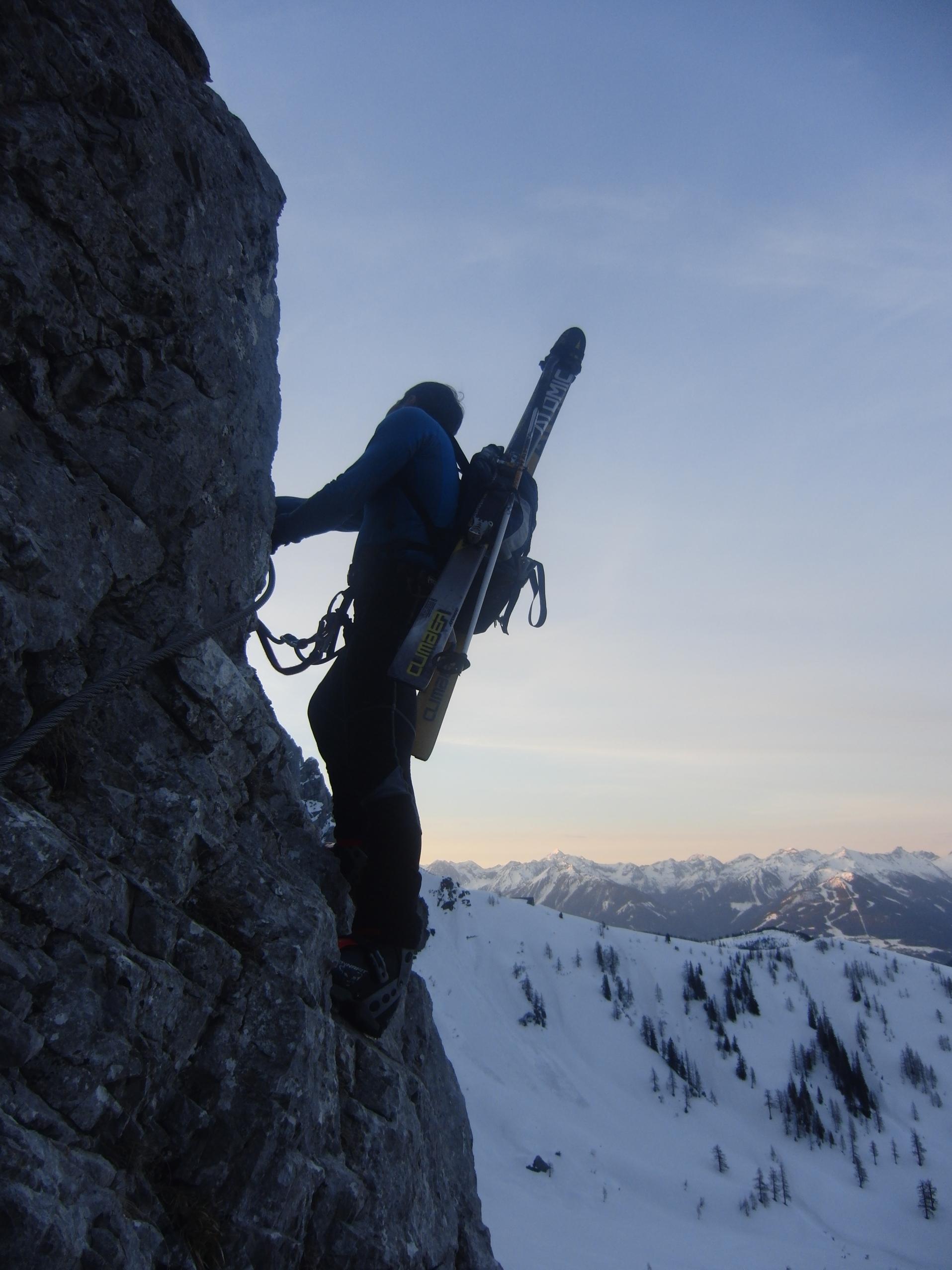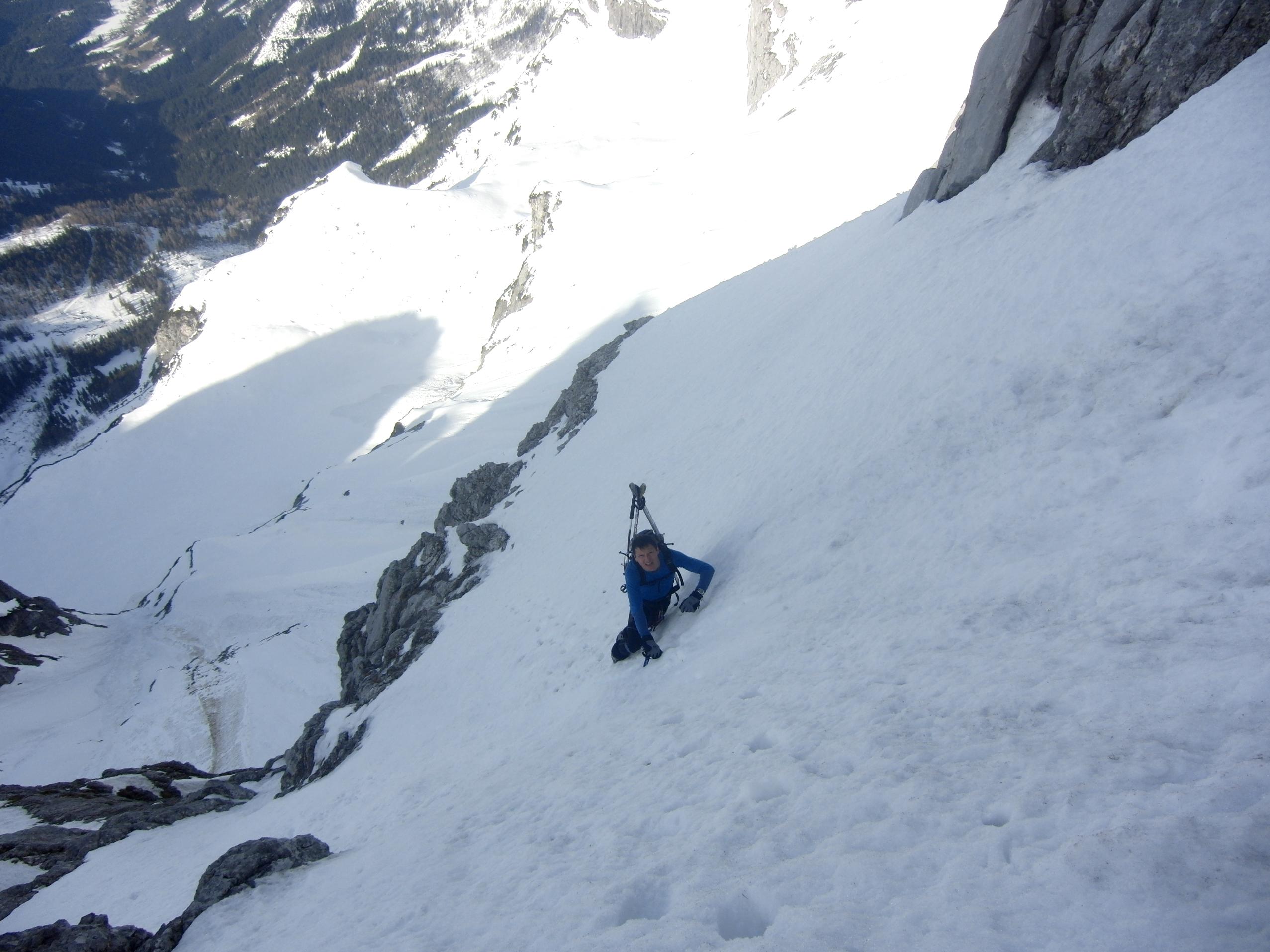 Schnee-Bedingungen: heute wirklich schlechte Bedingungen (mit Ausnahme Schwadrinne)! Immer wieder bricht man tief durch. Unterhalb der dünnen Kruste stark angefeuchteter Schnee. Auch unterhalb der Seethaler Hütte (immerhin auf über 2700) bricht man durch. Darunter dann meist tiefer Sulz. Überraschend guter Zustand in der Schwad-Rinne. Am besten waren wir heute jedenfalls in den Klettersteigen aufgehoben.