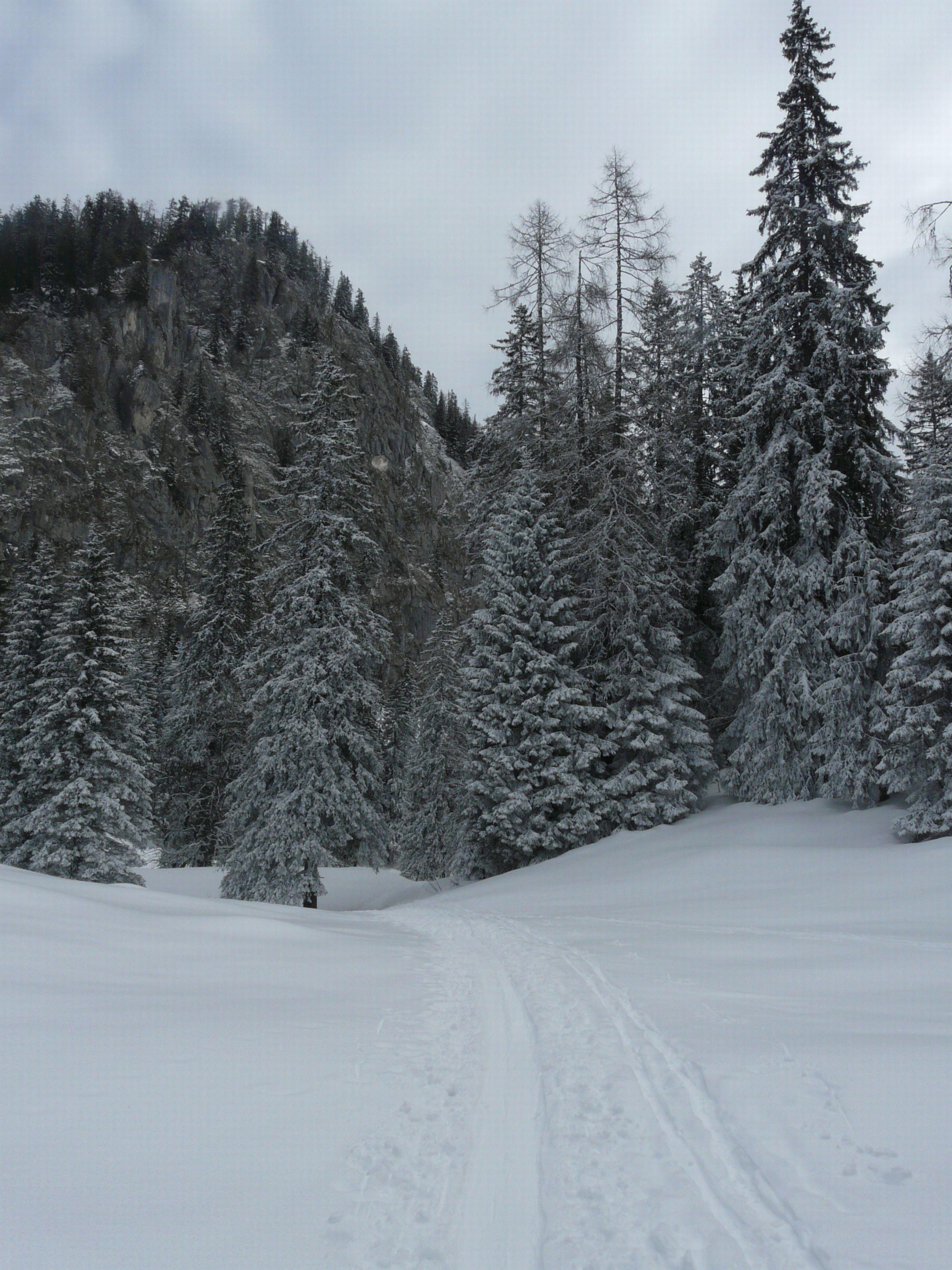 Vom Parkplatz bis zum Gipfel gute Schneelage. Abfahrt über die Bockskehl bis zur Königstalalm wiederaufstieg über den Gegenhang und dem Gratverlauf folgend zum Stahlhaus.