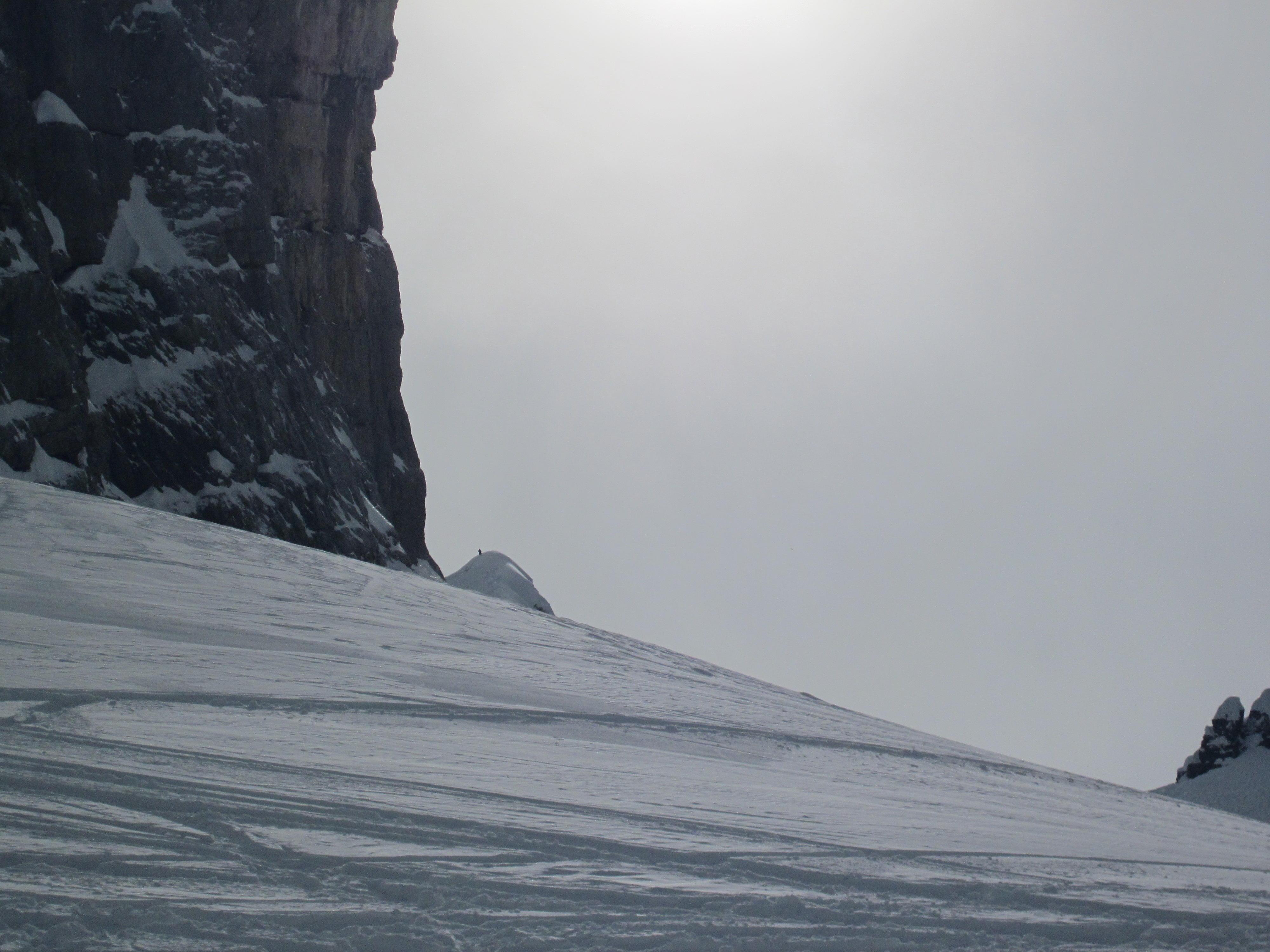 Ab ca. 14:00 Uhr keinerlei Lawinentätigkeit zu sehen, Dafür immer größer werdende Tragepassagen bis zum Parkplatz. Wir sind als eine der letzten runter. Ab ca. 15:30 einsetzender Fön und teilweise große Windfahnen am Kamm sichtbar.