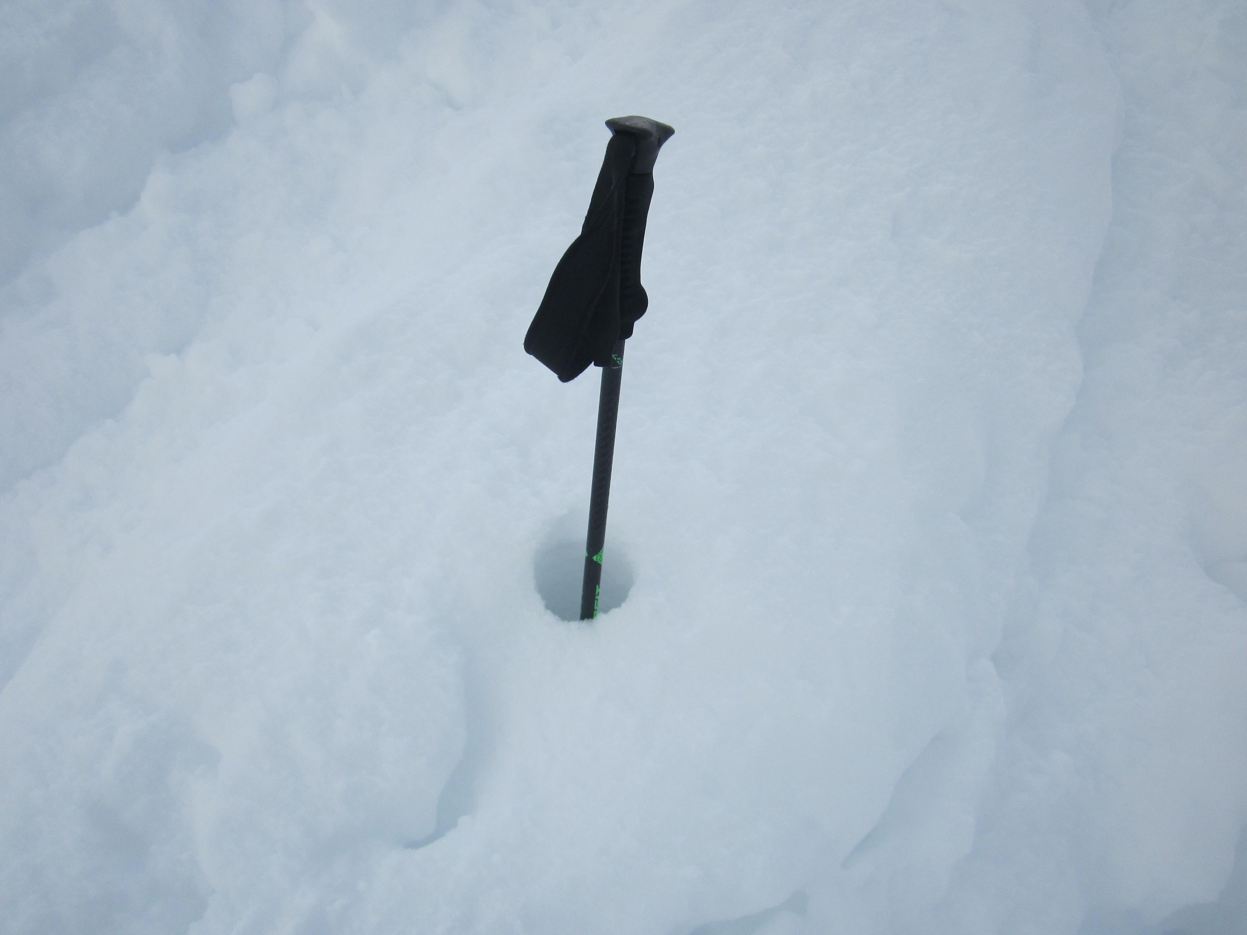 Aus Zeitgründen nur aufs 5. Kind. Beim dortigen Aufstieg brach der Skistecken samt Teller immer wieder ohne großen Kraftaufwand teilweise bis zum Griff durch (= 132,5 cm), was kein gutes Gefühl verursachte. Die Skispuren war ca. max. 40 cm tief.