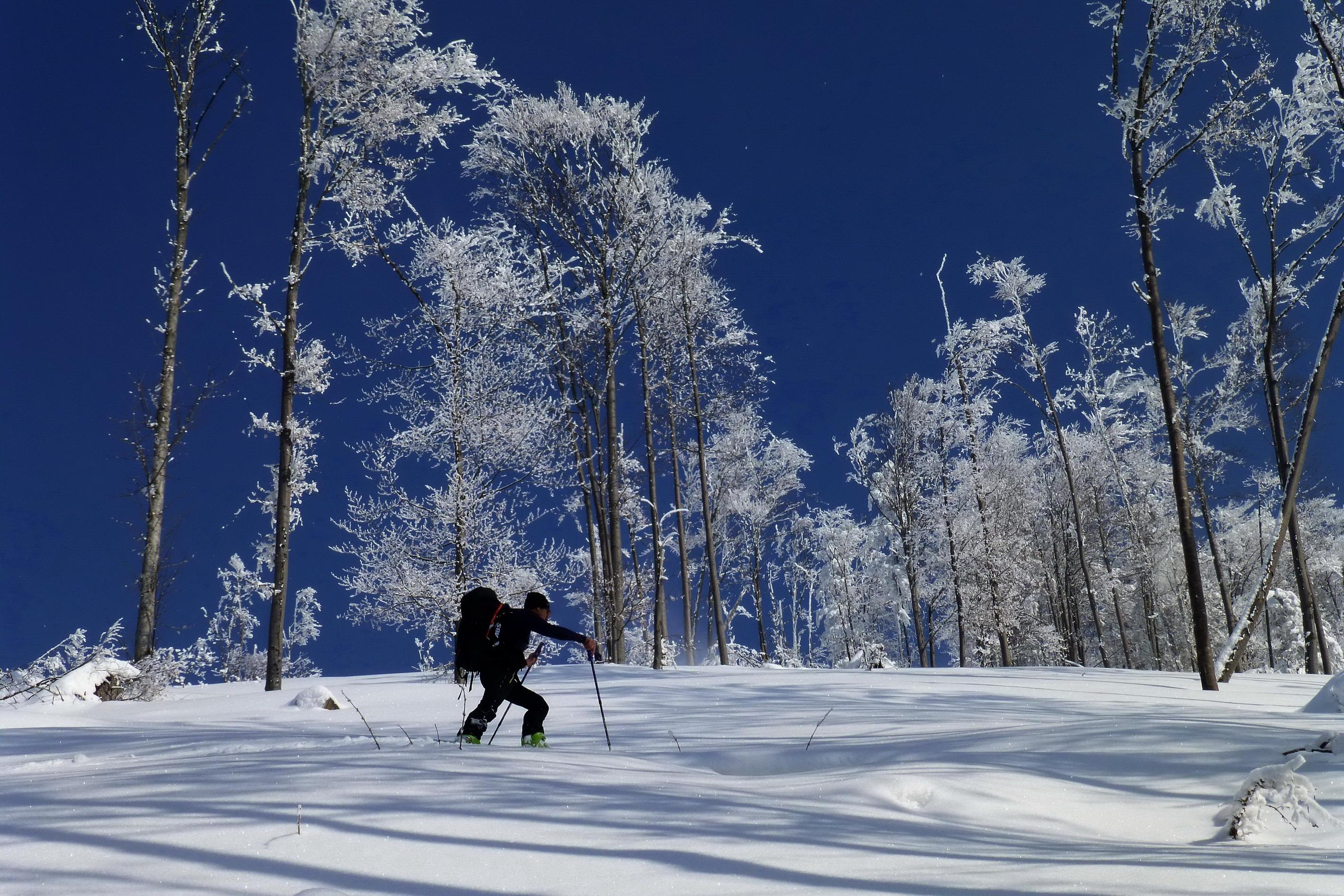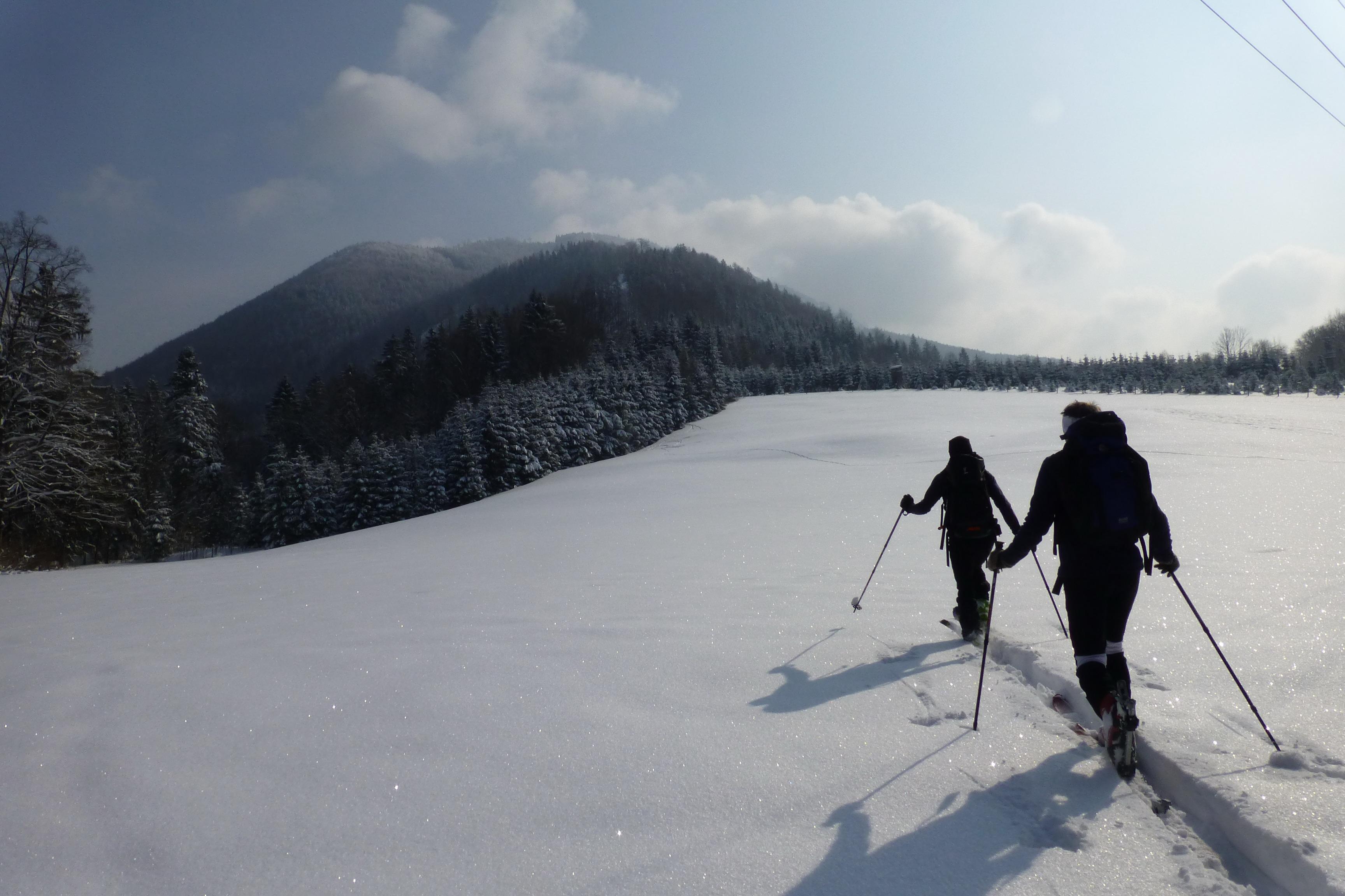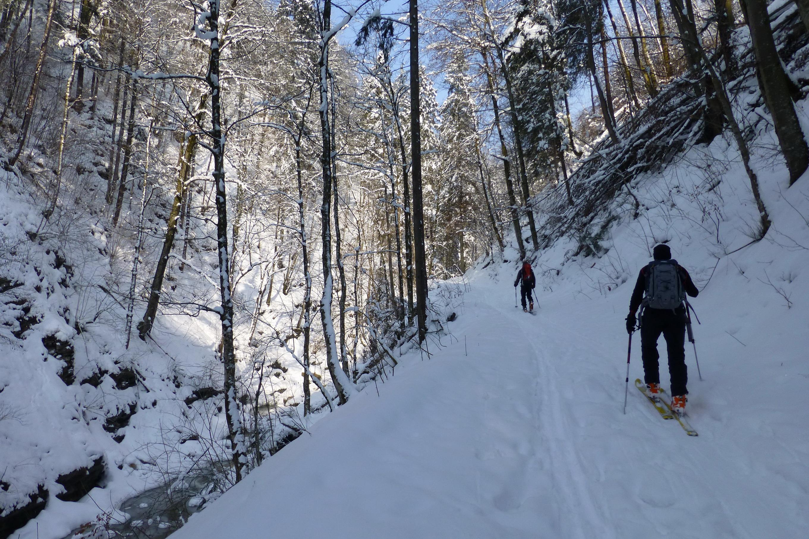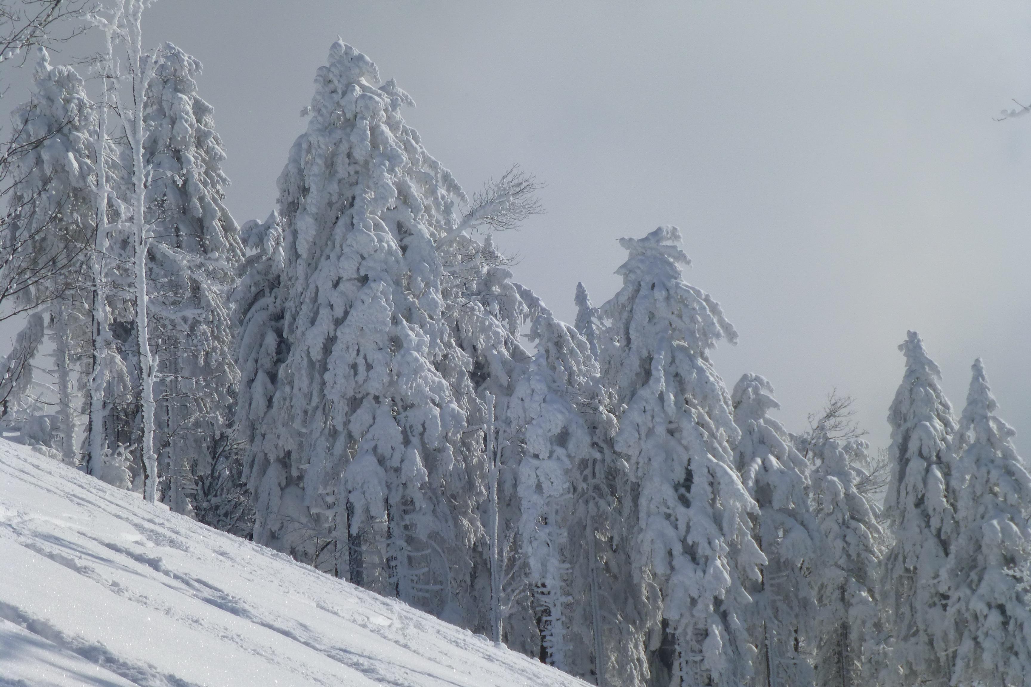 - vereinzelt war während des Spurens im Hochwald ein Gleithorizont ca. in 20 - 25 cm Tiefe spürbar (vermutlich auch eingeschneiter Oberflächenreif) - im großen und ganzen aber eine ziemlich spannungsfreie Schneeoberfläche