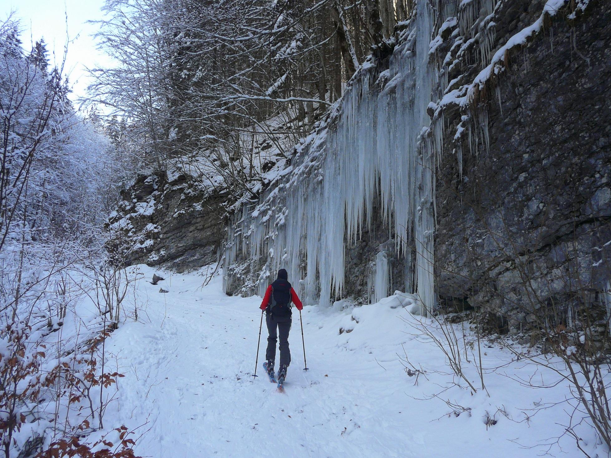 im oberösterreichischen Zentralraum massenhaft Schnee, beim Ausgangspunkt im Steyrlinger Brunnental viel weniger, dafür aber Tourengeher ohne Ende. Wir befürchten Schlimmstes.