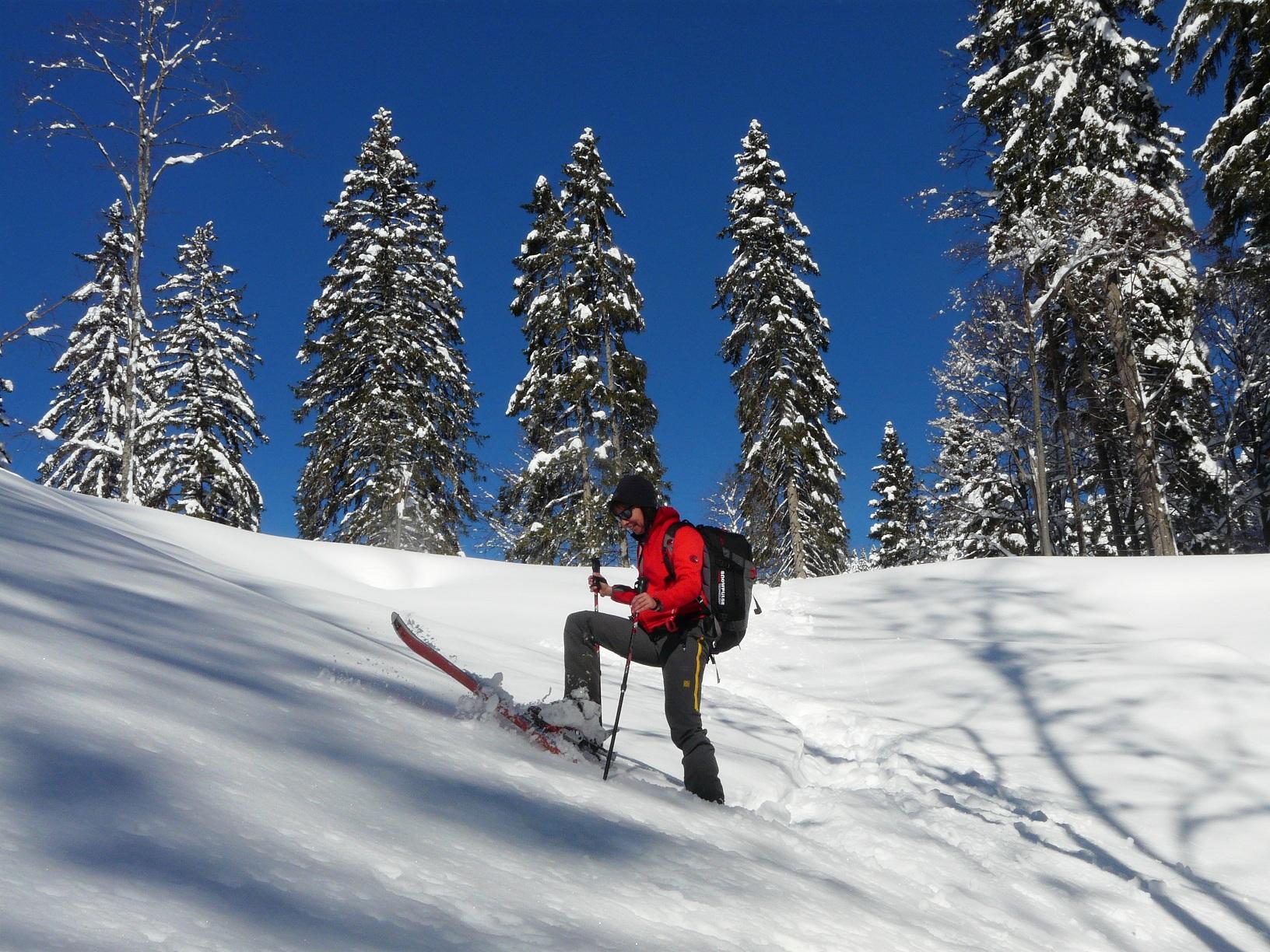Spurarbeit auf den Jausenkogel bis zu 50 cm Neuschnee, zu zweit eine Mords Schinderei, dafür völlig allein.