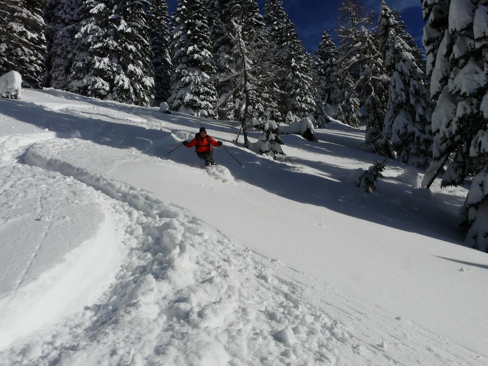 Keine Lawinentätigkeit sichtbar bzw. erkennbar, südseitig ab dem späten Vormittag in der Sonne bereits Umwandlung des sonst lockeren Pulvers, bei Übergang Sonne - Schatten bleibt der Schnee sogar am Belag picken.