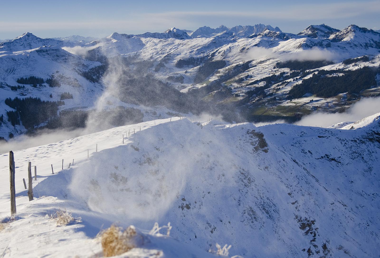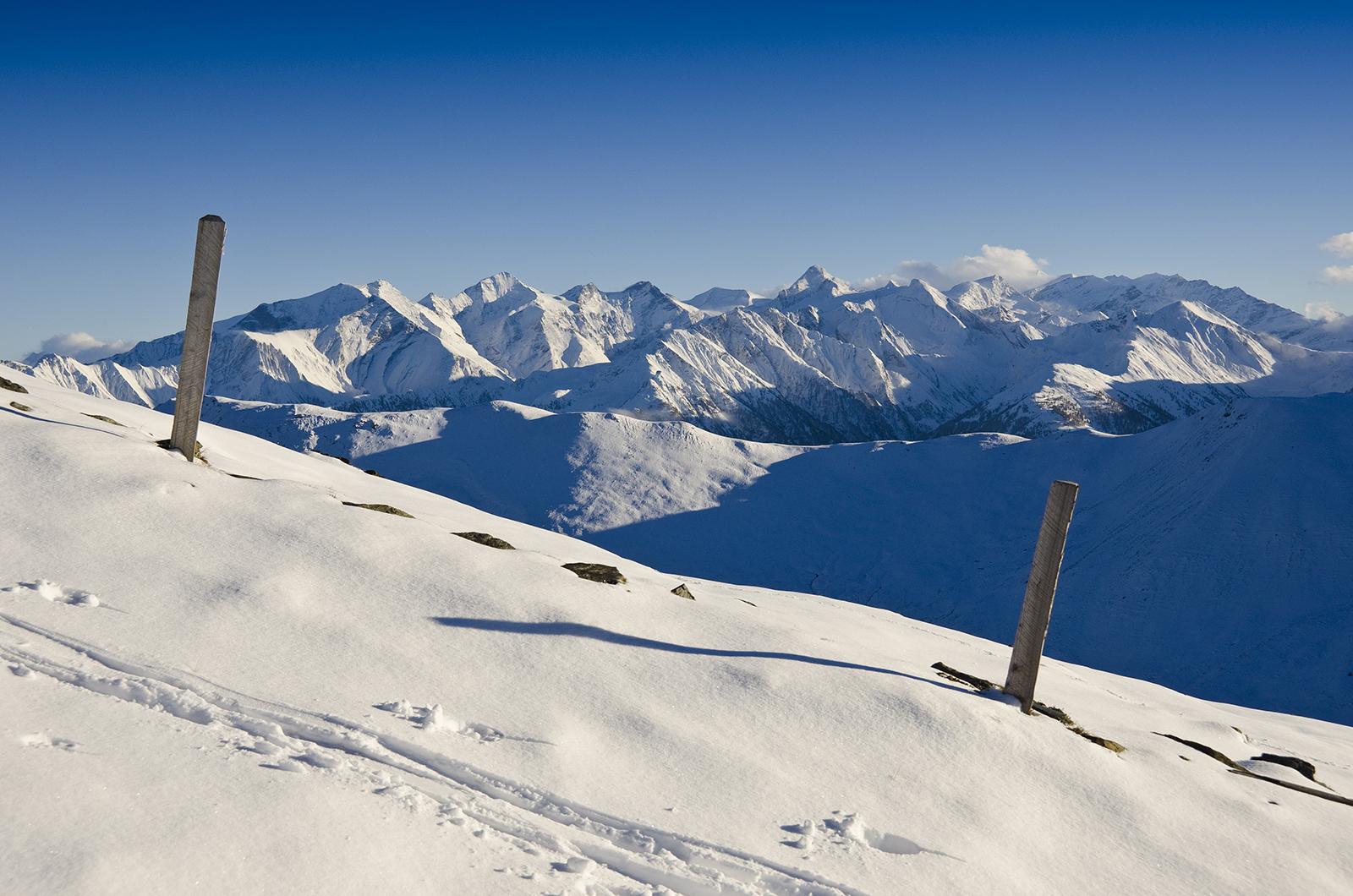 Auf dem Weg über die Hackelbergeralm zum Saalbachkogel hoch kann man auch ohne Ski, ohne dass der Schnee zu tief wird.