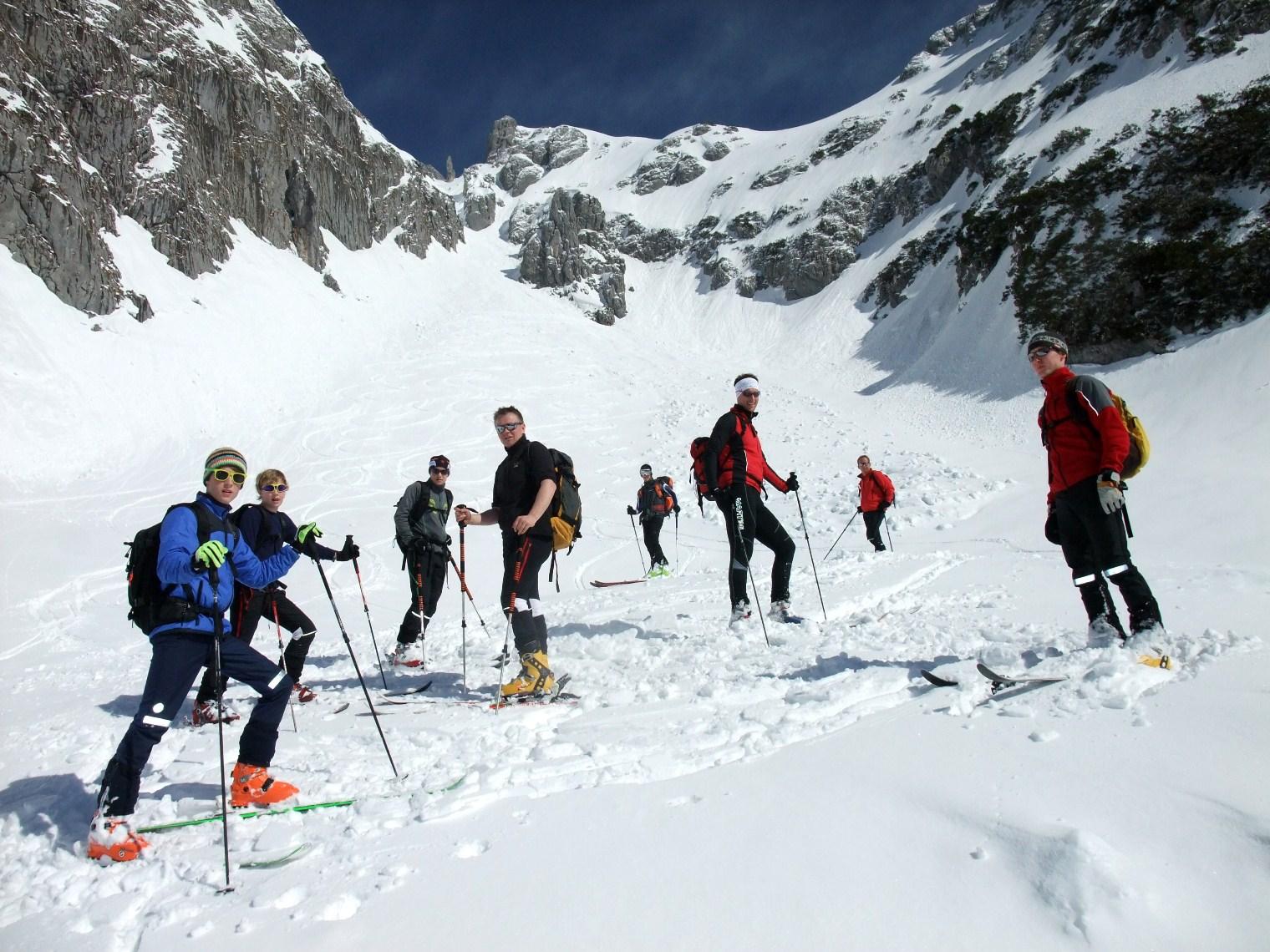 Am Vormittag mit meinen jungen Freunden aus der Christengemeinde Abtenau. Bombensichere Verhältnisse. 10 cm Neuschnee auf Harsch, Neuschnee schon leicht umgewandelt. Gute Fahrverhältnisse, im Schatten noch Pulver.