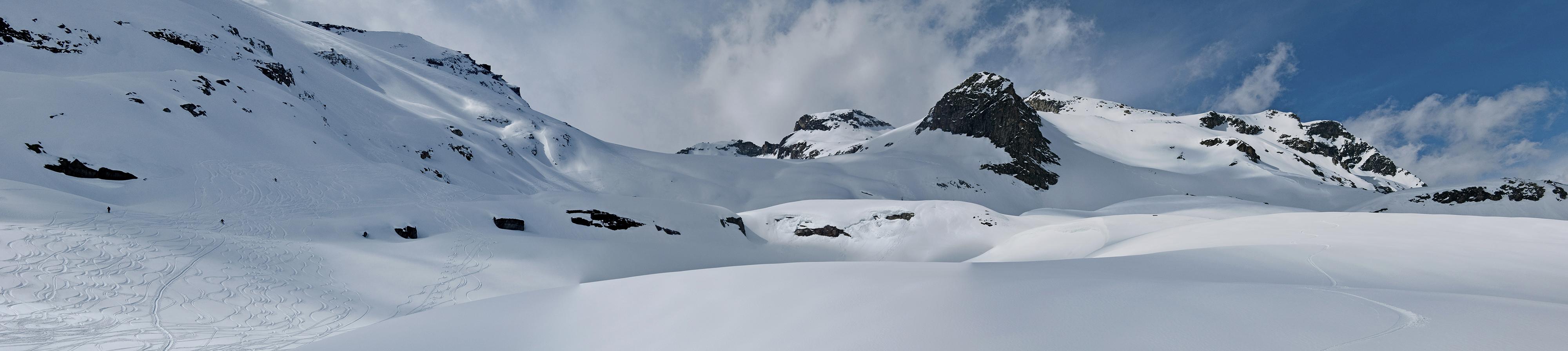 Die gemütliche Potsdamer Hütte 2025 mtr. ist noch bis Ostermontag geöffnet und hat viele schöne Touren zu bieten. Der Schnee ist auch noch reichlich und in angenehmer Konsistenz vorhanden. Von Pulver bis Firn konnten wir die Hänge genießen.