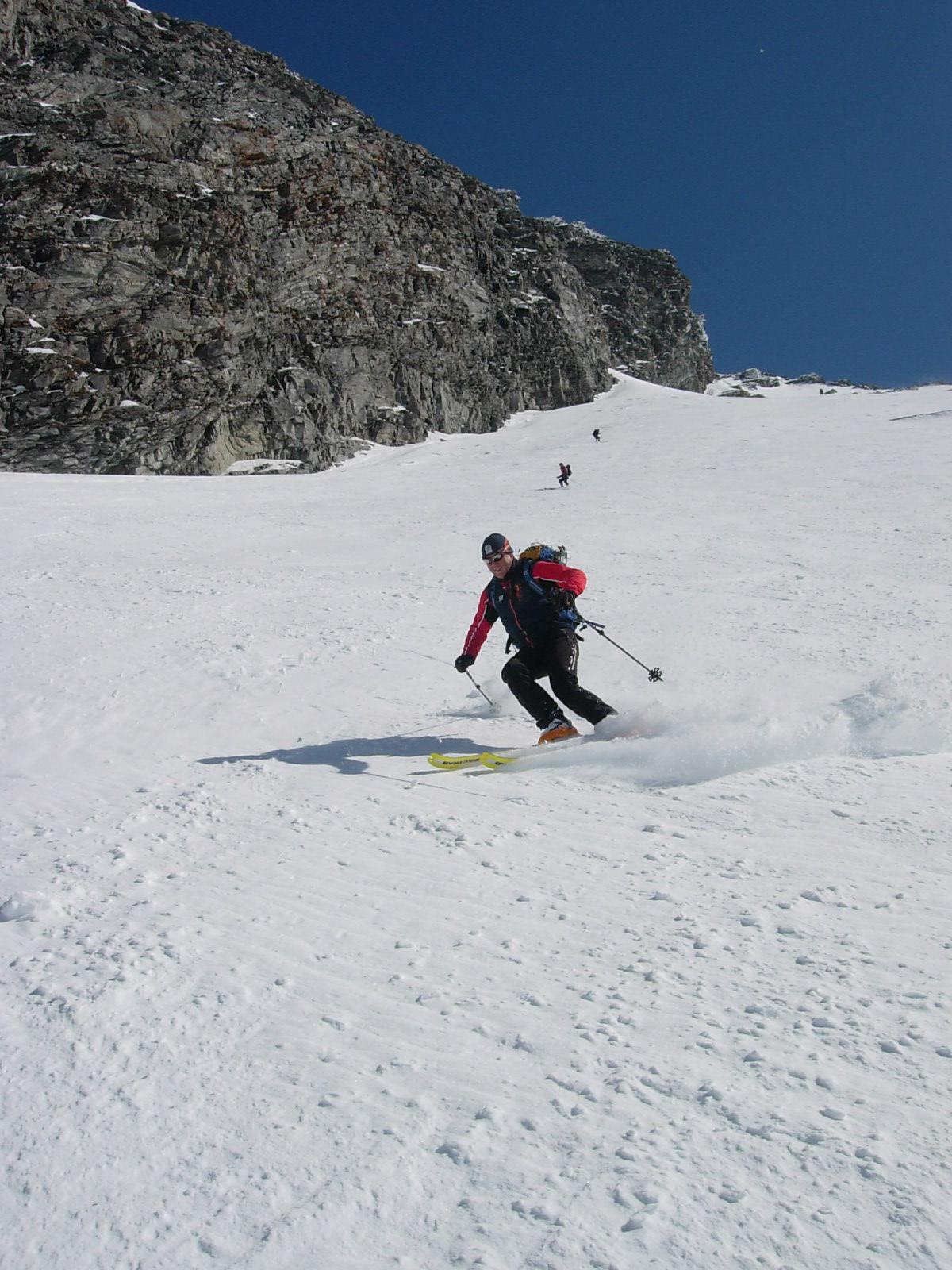 Die Steileinfahrt war mit windgepresstem Pulver und griffigem Untergrund eine besondere Klasse für sich und im unteren Teil hatten wir Firnschnee ( bis zum Bahnhof Böckstein ;-)