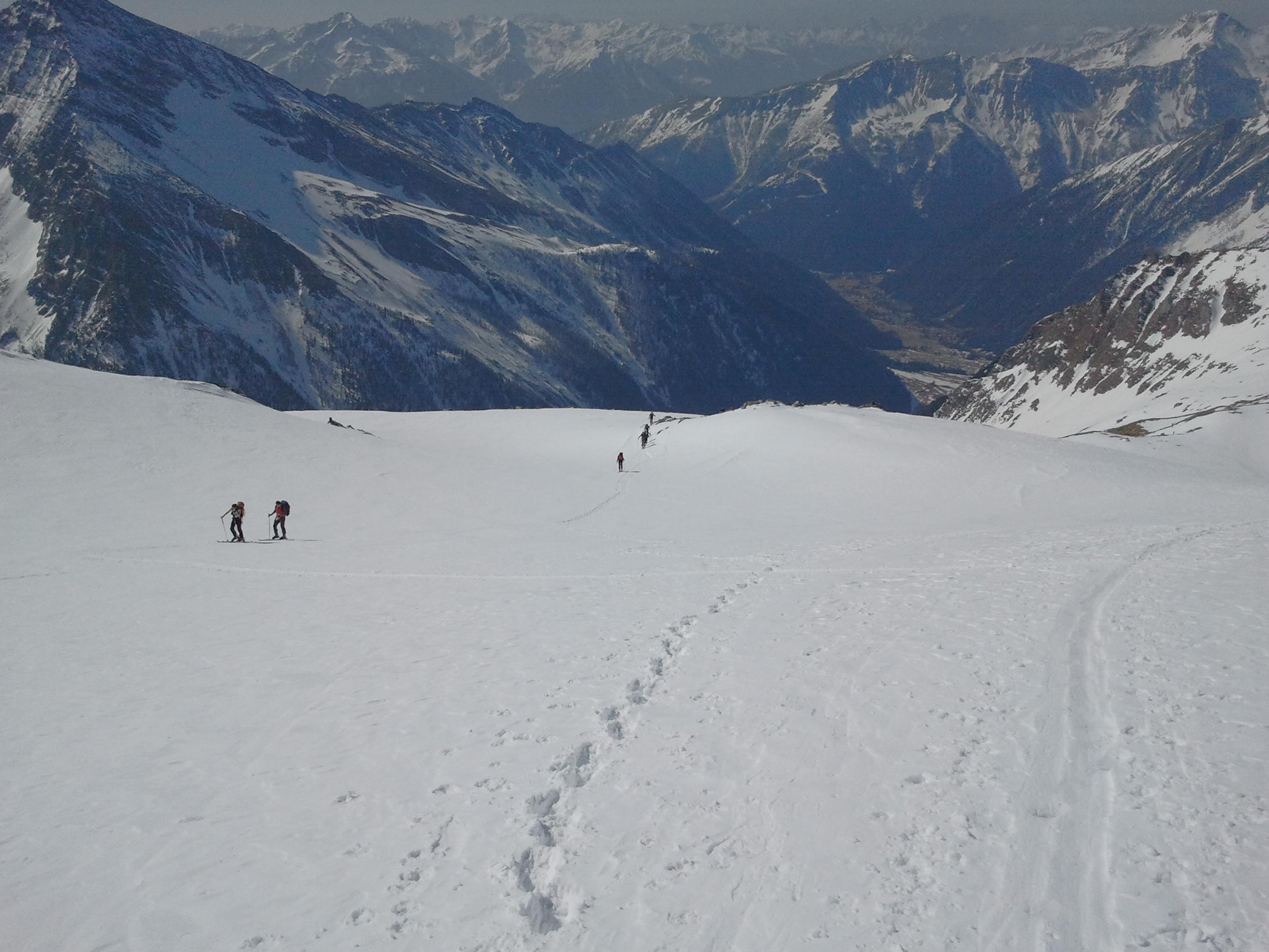 Die superlange Abfahrt von der Ankogelscharte -Einfahrt zw. kleinen und großen Ankogel in das salzburgerische Anlauftal nach Böckstein bot sich von seiner besten Seite.