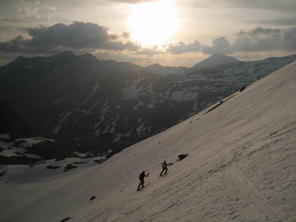 Vor der angekündigten Wetterverschlechterung fürs Wochenende muß doch noch schnell eine Schitour her. So gehts durch den Elendboden/Beindlkar hinauf zur Brennkogelscharte und weiter Richtung Gipfel. Bei besten Firnbedingungen fahren wir bis zum wunderschön gelegenen Brettersee ab und steigen danach wieder zur Brennkogelscharte auf. Danach genußreiche Abfahrt durch das Beindlkar bis hinunter zum Auto. Abfahrt ins Guttal ist kaum mehr möglich bzw. lohnenswert - lange Tragestrecken.