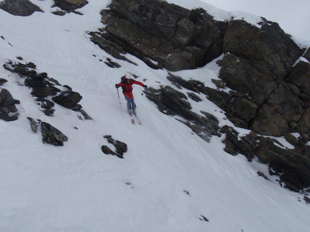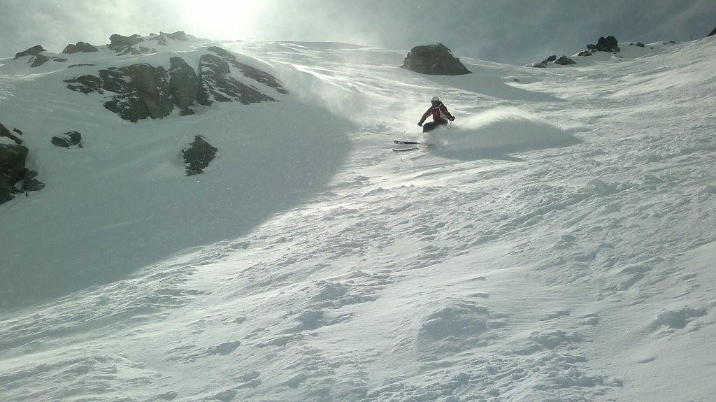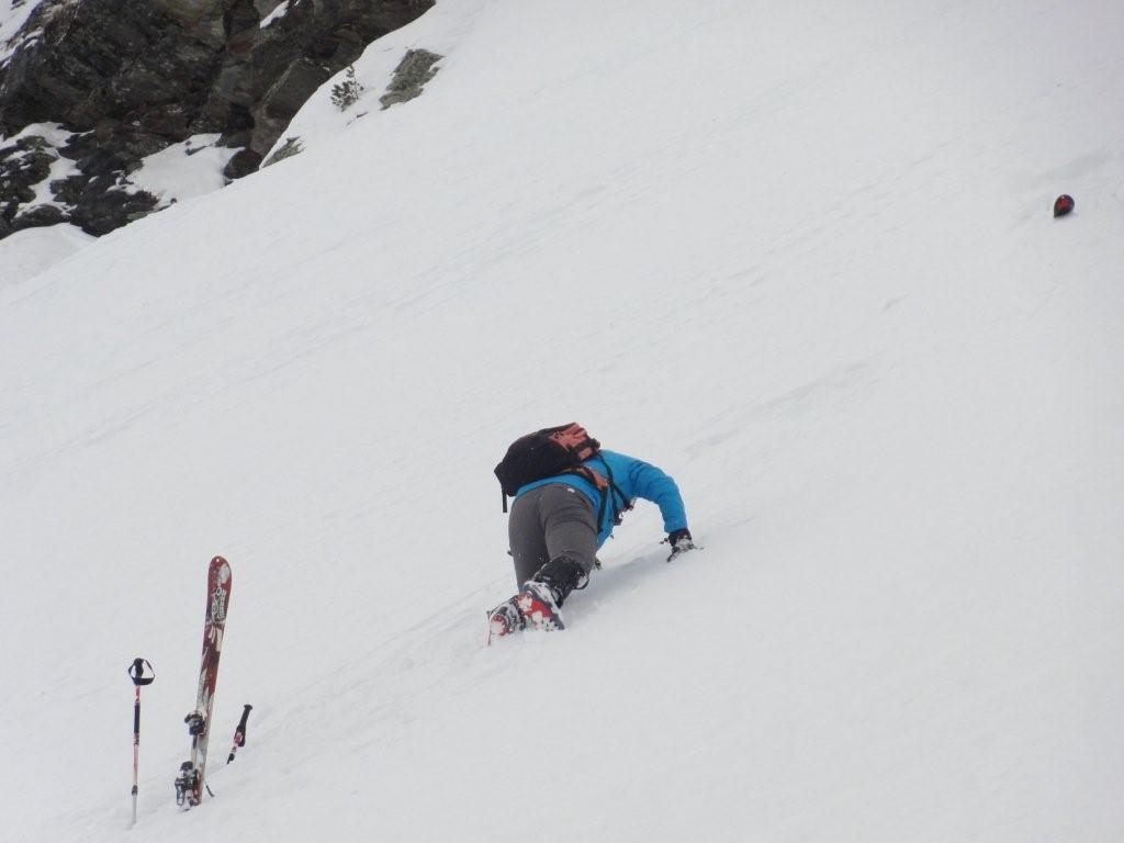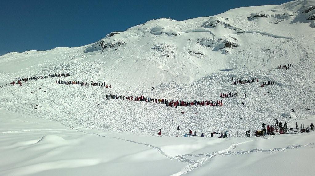 Nach 5 Tagen eher schlechter Sicht und einen Tag Regen bis auf 2000m kam der Freitag .Unsern letzter Tag in Les Menuires wollten wir auf den Caron. Zuerst fand Jochen seine Liftkarte nicht mehr er hatte sie bei der Nachttour am Vortag ausgestreut. Es hatte am Donnerstag in Les Menuires geregnet auf 1850m und erst am Abend aufgerissen. wir entschieden uns noch für eine Skitour mit Besuch bei Sophy und waren erst gegen 23 Uhr zurück. Wir sind also spät nach Val Thorens aufgebrochen aber der Ausflug lohnte sich . der Schnee über 3000m war super.Voller Euphorie machten wir ein paar Schnappschüsse bei de Rückfahrt vom Caron als ich plötzlich vor einer riesigen Abrisskante stand.Als ich die Lawine umrundet hatte kamen gerade 3 Bergretter an. Die Lawine mußte erst kurz vorher abgegangen sein. Viele Spuren führten hinein.Die Suche mit Pips und Suchhunden war negativ. Danach wurde 2h sondiert, zum Glück war keiner in der Lawine verschüttet. Immer mehr Skilehrer und Helfer beteiligten sich .Insgesamt waren es mehr als 200 Mann.Die Suchaktion war vorbildlich und ohne Zweifel notwendig, da die Unglückstelle zwischen 2 Pisten war und sehr viele Spuren hineinführten.