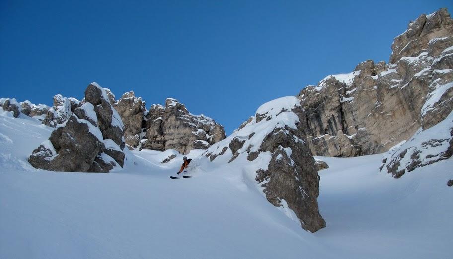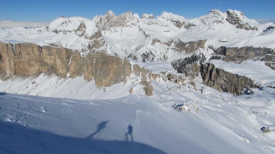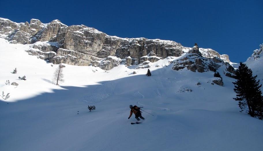 Gestern 19.2.2011 durch das Val Chedul auf den Col Toronn. Abfahrt durch die Canale Col Toronn und hinüber zu den Pisten Col Pradat. Aufstieg zur Forcella de Ciampei und Abfahrt in das Langental.