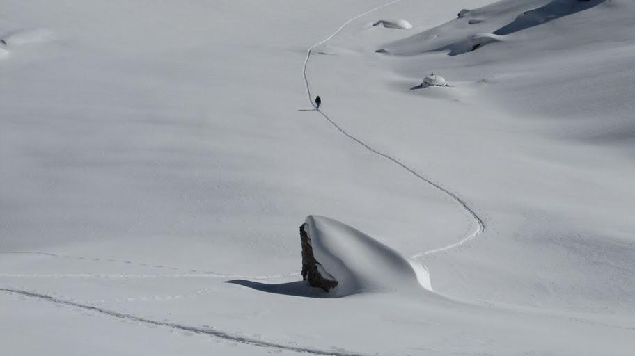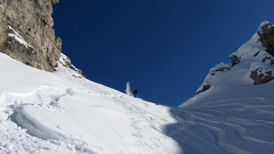 Im Tal 5cm, nordseitig bis 30/40 cm Neuschnee. In den schattigen und flacheren Hängen herrlicher Pulverschnee. In der Südseitigen Steilrinne ist der Neuschnee bereits abgegangen - darunter hart/griffig. Sonnseitig sonst schöner Firn.