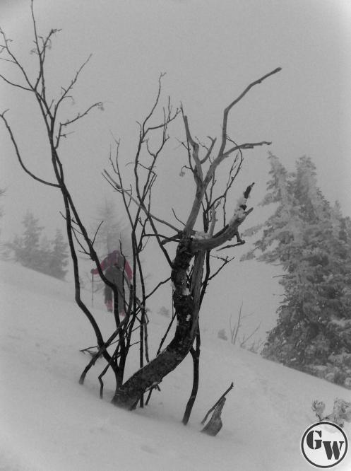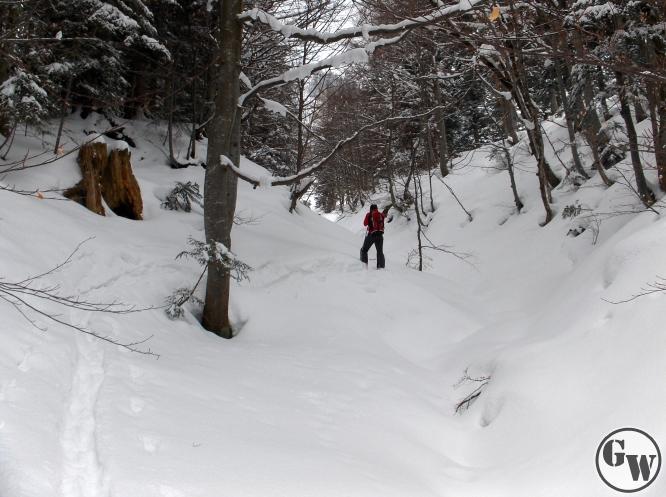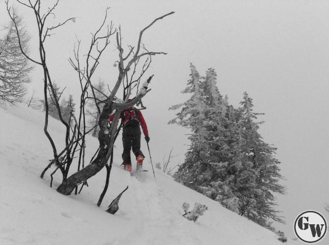 Bedingungen: Bis auf etwa 1400m durchgehend 10-30cm frischer Pulverschnee auf weichem, aber tragendem Untergrund. Für die Abfahrt hinunter zur Storchenalm ein wahrer Traum. Im Gipfelbereich war es hingegen teilweise extrem abgeblasen und es gab oft einen sehr harten und rutschigen Harschdeckel als Untergrund. Für die Abfahrt allerdings auch oben noch mehr als genug Schnee. Auch der Forstweg bis zum Parkplatz ist noch super befahrbar.