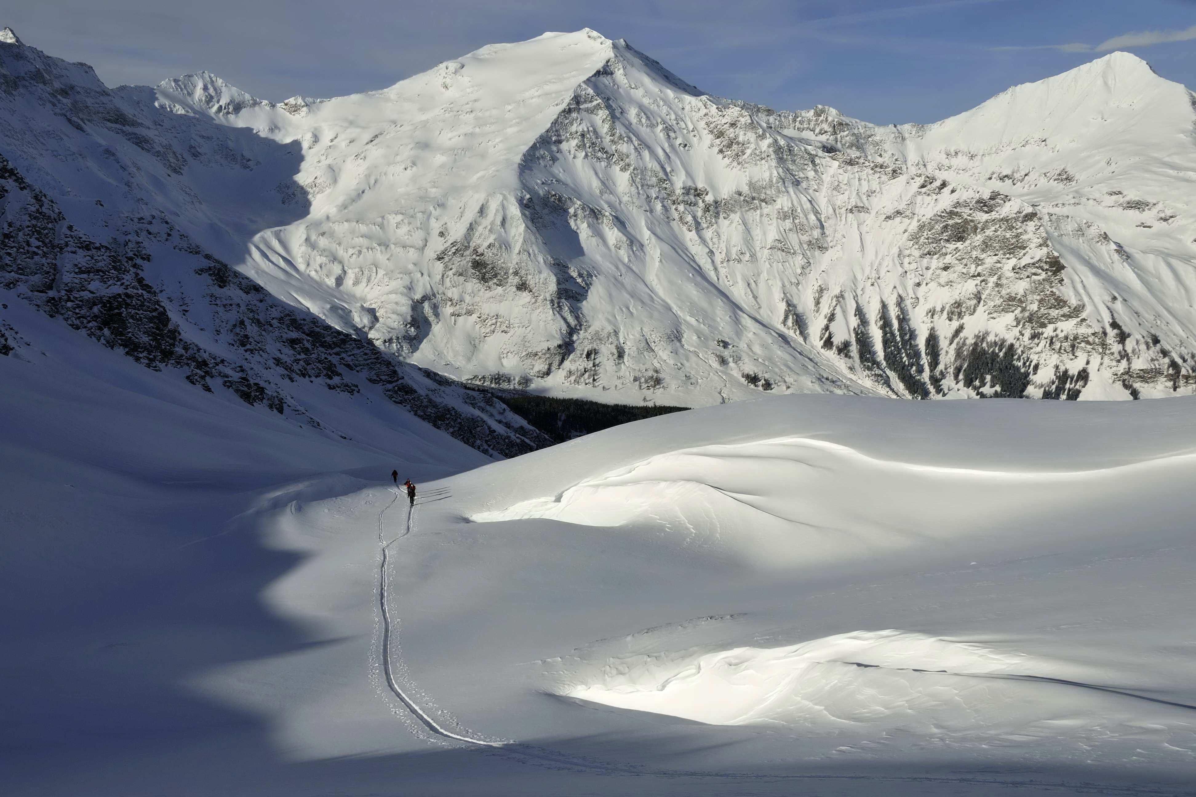 Im Rahmen desWinterausbildungskurses der Salzburger Bergrettung im Raurisertal unternahmen wir eine Tour auf den Kolmkarspitz. Aufgrund der hohen Lawinengefahr bot sich diese Tour als einzige Alternative an. Wie so oft in den Tauern, meist windgepreßter Pulver.