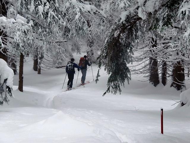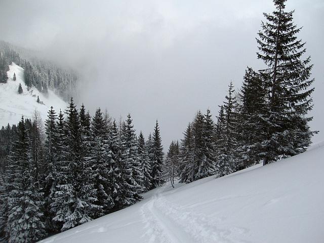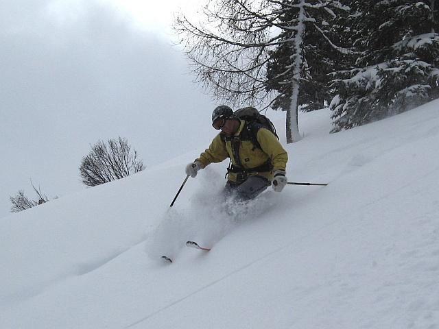 Das Purtschellerhaus am Fuße des Hohen Gölls steht direkt auf der Grenze zwischen Österreich und Deutschland und ist auch von verschiedenen Ausgangspunkten erreichbar. Unser Start war bei der Autobahnunterführung in Kuchl (Parkmöglichkeit) und ging entlang der ehemaligen Schiabfahrt zum Gehöft Hochschaufler. Kurze Abfahrt entlang der Straße zur Abzweigung "Haigermoos" und von hier zur Dürrfeichtenalm am Roßfeld. Weiter zum Eckersattel und Aufstieg zum Purtschellerhaus. Abfahrt entlang des Aufstieges bis zum Eckersattel, Aufstieg zur Roßfeldstraße und Abfahrt über den Hiefler zur Dürrfeichtenalm. Weitere Abfahrt zu den Gehöften Haigermoos und Hochschaufler und zum Ausgangspunkt in Kuchl. Der Neuschnee hat speziell in den freien Hängen für beste Verhältnisse gesorgt. Im Wald auf Grund der vorhandenen Forstwege bzw. der alten Abfahrtsstrecke vom Hochschaufler nach Kuchl ebenso. Lawinensituation: durch die mäßige Steilheit des Geländes keine relevante Gefährdung.