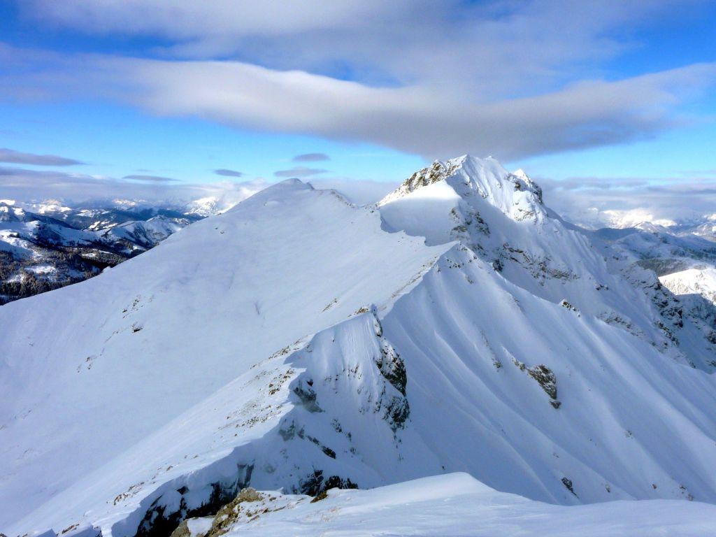 Im Ennskar weiter aufwärts - das Spuren wird bei den Riesen Neuschneemengen ganz schön anstrengend. in ca. 10 Minuten über den Grat zum aussichtsreichen, aber saukalten Gipfel.