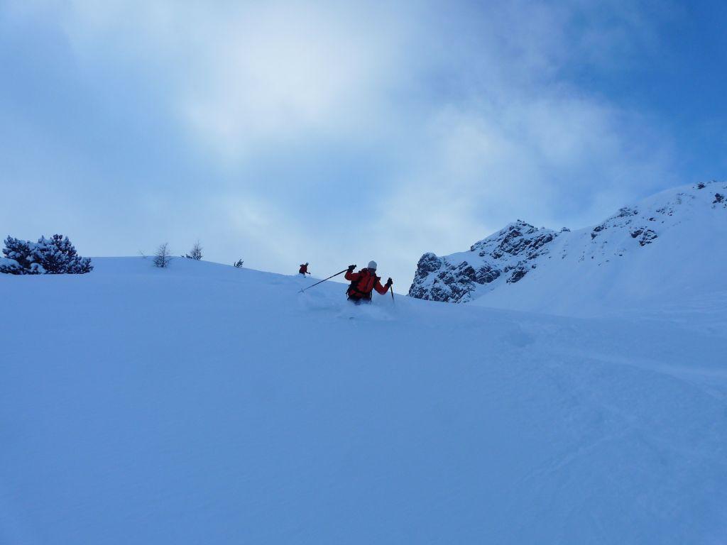 ACHTUNG: im steileren Abschnitt des Ennskars einige eingewehte Triebschneeansammlungen. Stellenweise mindestens 50 cm Neuschnee.