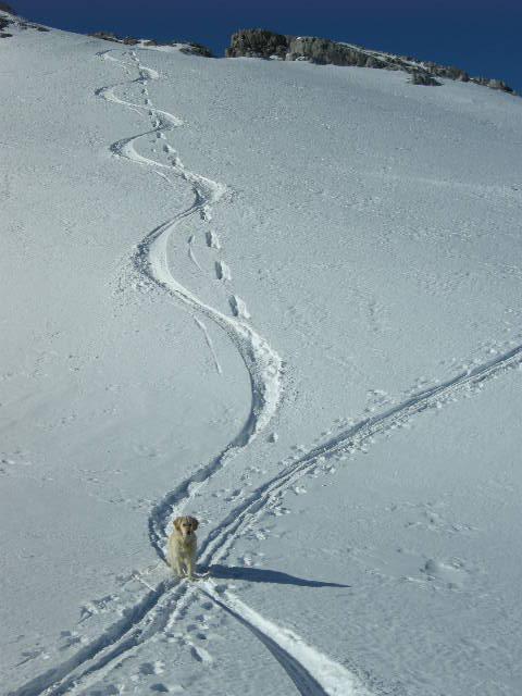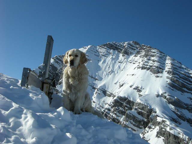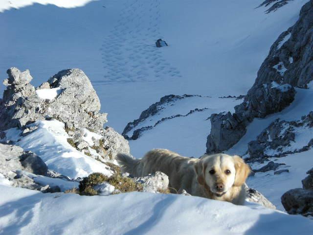 Am Kuchelhorn Westgrat streiken 50Hm unter dem Gipfel erst der Hund und dann auch ich.