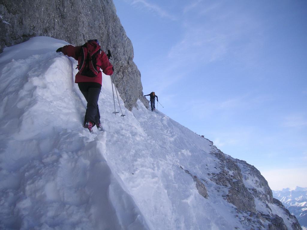 Am "Eckerberg" heute sehr gute Bedingungen: ideal angelegte Spur, viel Sonne, wenig Wind, wenig Verwehungen, das Felsband gut begehbar, traumhafte Fernsicht.