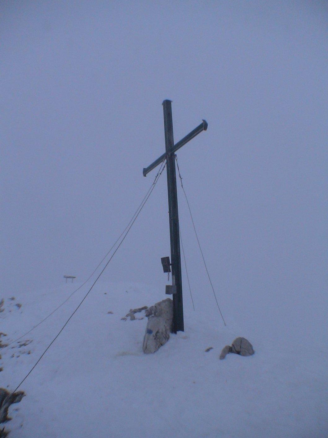 Im Gipfelbereicht Nebel und Schneefall.