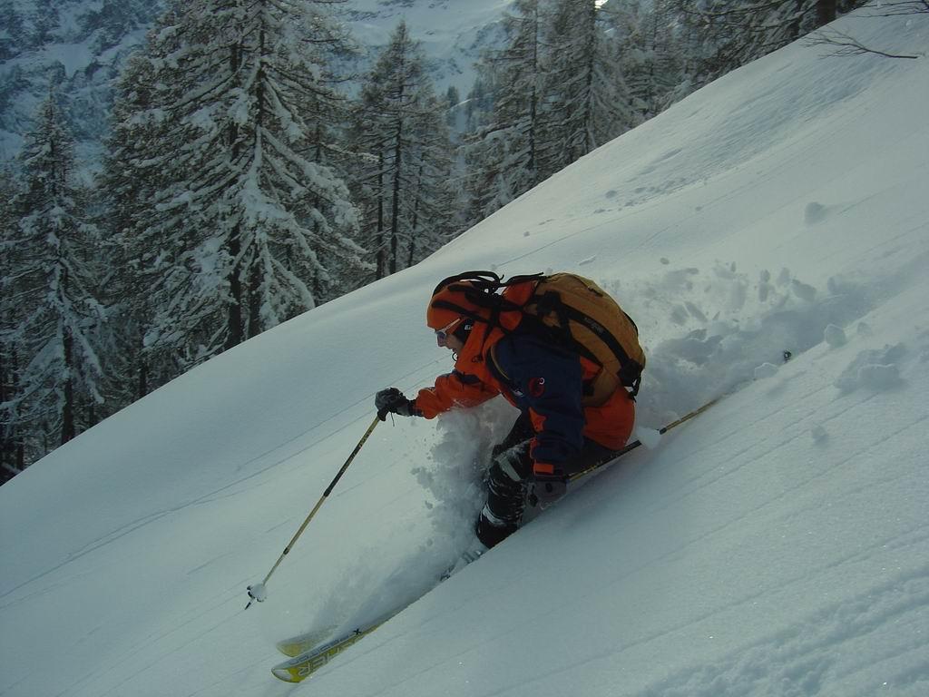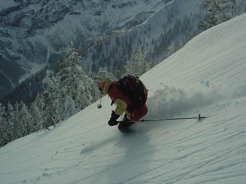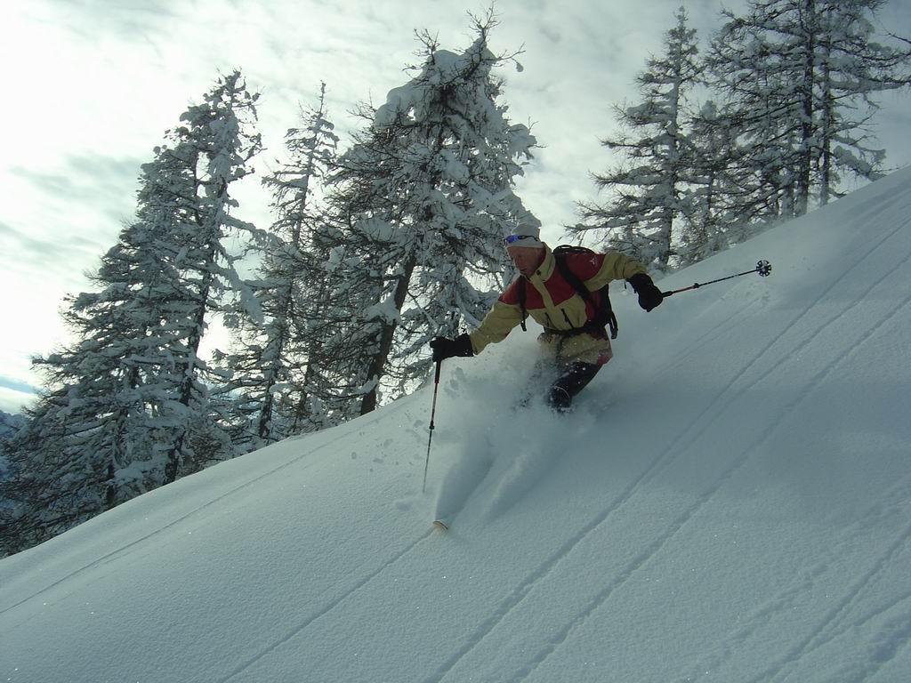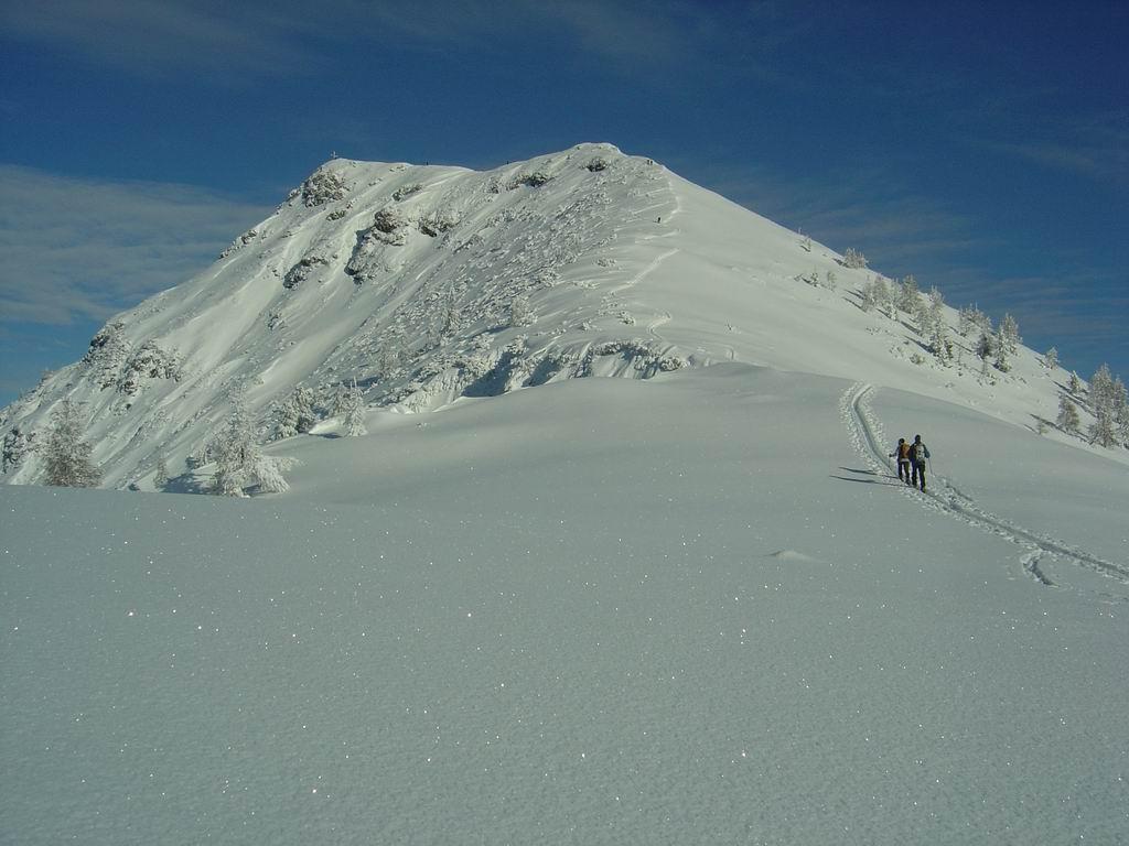 Bei herrlichem Winterwetter gingen wir heute - vorbei an der Ranstlalm - durch das wunderschöne lärchenbestandene Kar in den Sattel zwischen Schilcheck und Benezeck und folgten dann dem Kammverlauf zum Gipfel. Perfekte Altschneedecke mit ca. 30 - 40 cm Pulverauflage ohne Windeinfluß. Die Abfahrt erfolgte heute durch den sogenannten "Lahngraben" bei besten Bedingungen.