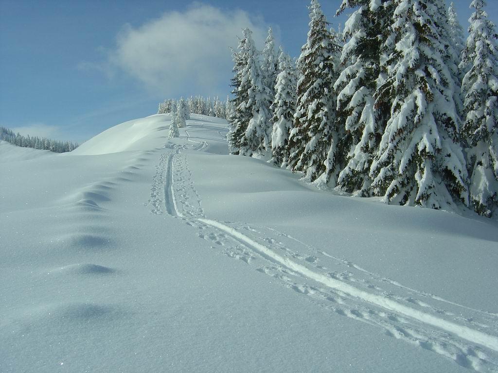 Für unseren Skitouren-Saisonstart suchten wir uns heute das Grünköpfl aus und lagen mit diesem Ziel genau richtig. Ca. 20 cm feinster, vom Wind unbeeinflußter Pulver auf perfektem, hartem Untergrund. Das prachtvolle Wetter tat sein übriges zu einem gelungenen Tourenauftakt.