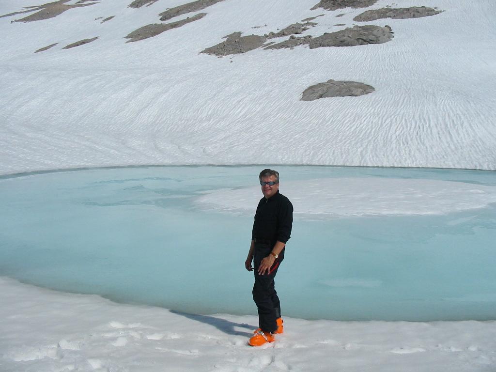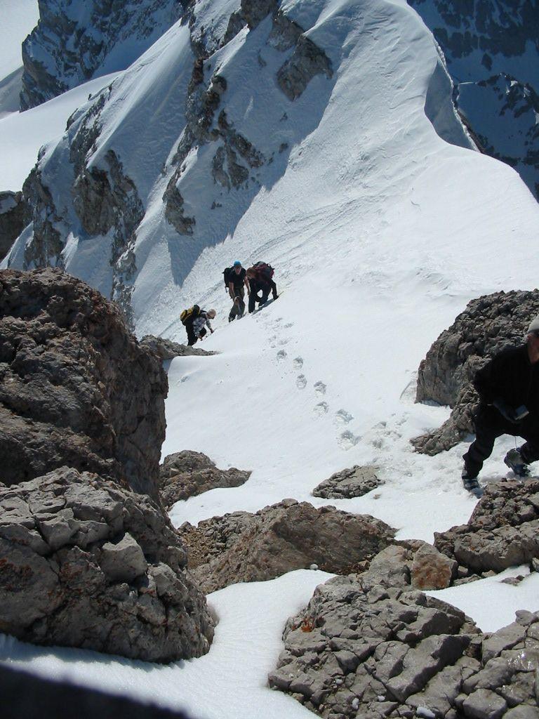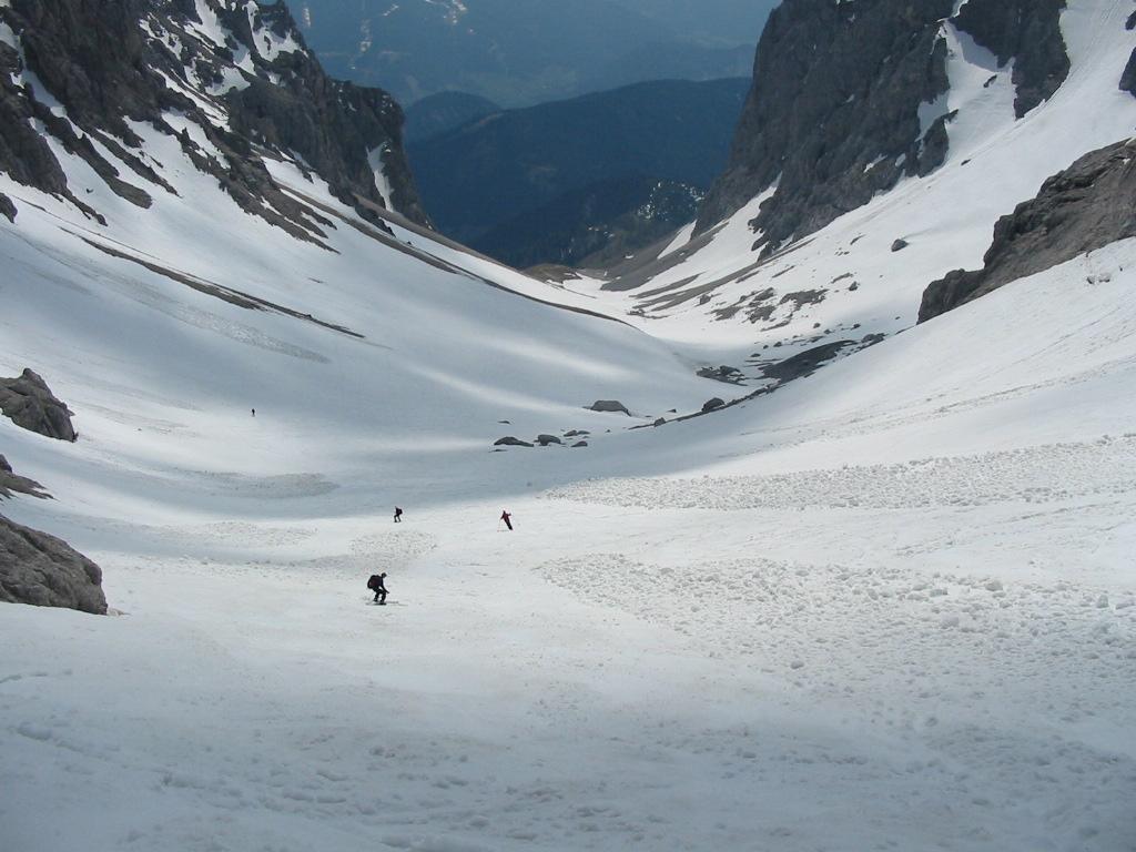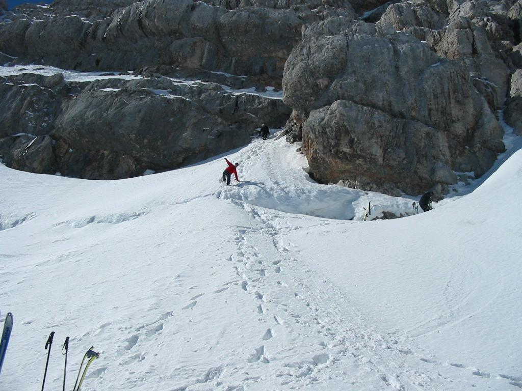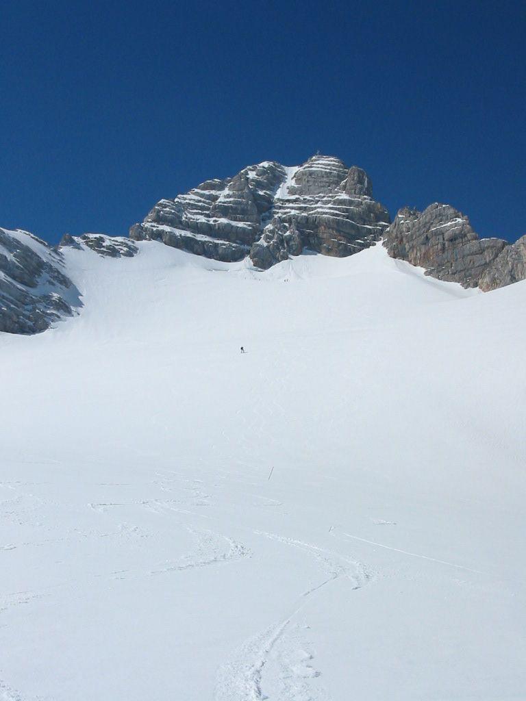 Heute ging es auf den Hohen Dachstein.Nachdem die Hunerkogelbahn für Tourengeher in der Früh (ca. 7:30)noch eine Bergfahrt macht konnten wir das noch nutzen.Der Tourenverlauf: Aufstieg zur Randkluft, Schidepot,weiters mit Steigeisen zum Dachsteingipfel 2995m abstieg und herrliche Firnabfahrt über den Hallstätter Gletscher bis zum Unteren Eisee 2022m,hier machten wir(ich und 5 Trofaiacher Tourenkolegen)eine kurze Rast erneuter Aufstieg entlang des Gjaidsteinmassives zum Gjaidsteinsattel ca.2650m weiterfahrt Richtung Koppenkarstein Aufstieg über die Leiter zum Rosmariestollen danach Abfahrt in das Edelgries und weiters zur Talstation Hunerkogelbahn.