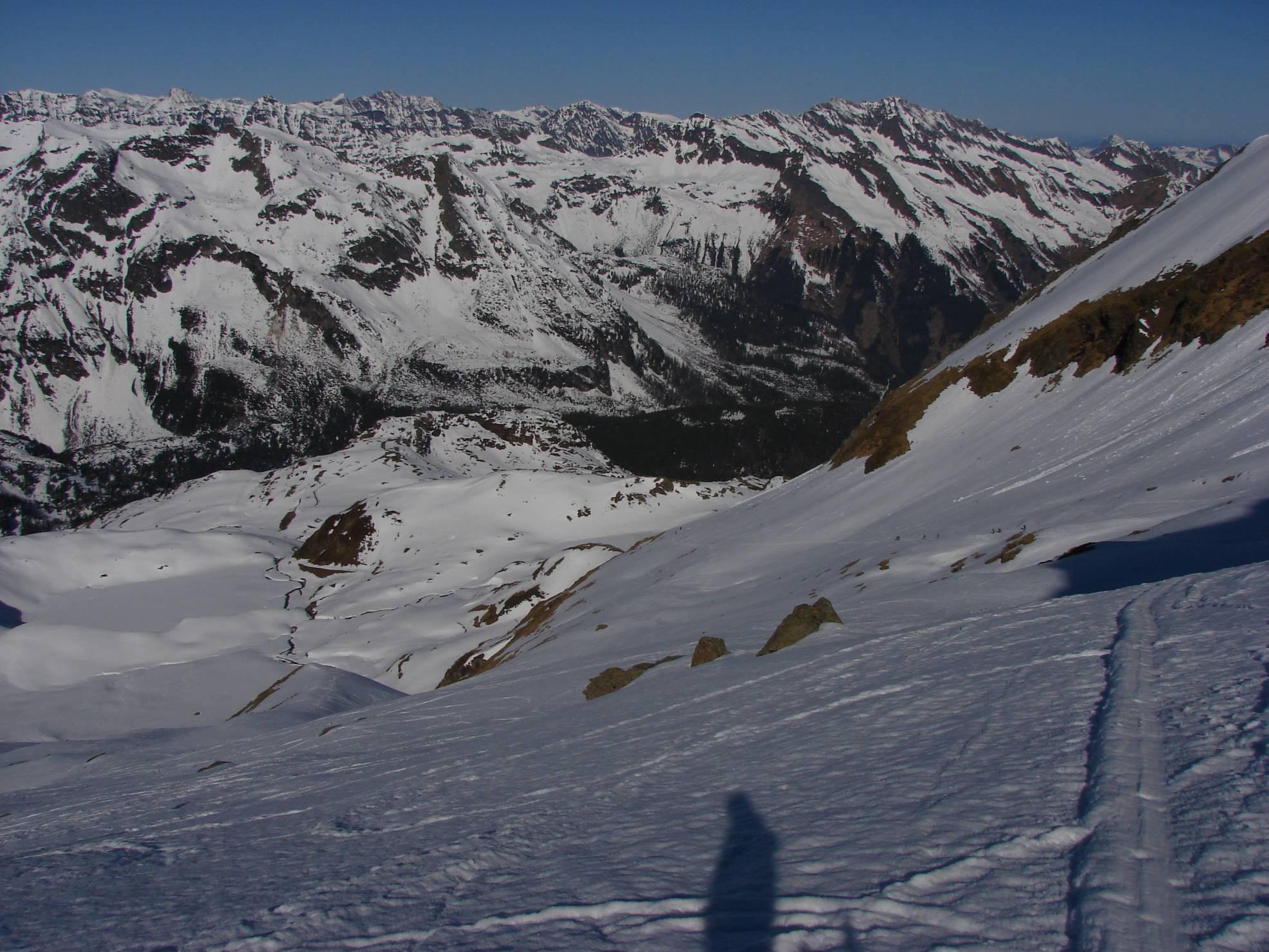 Heute ging es auf den Hocheiser (3.206m) - Start um 6:00h am Enzinger Boden (1.480m). Kurz nach dem Tunnel konnten wir die Schi anschnallen danach waren es noch 4-5 kurze Stücke wo abgeschnallt werden musste. Ganz im Gegensatz zum Hocharn eine Woche zuvor waren wir hier bis zum Mitterbirg noch alleine unterwegs. Der gefrorene Firn war gut zu gehen und bei der Abfahrt gab's dann den perfeketen Firn.