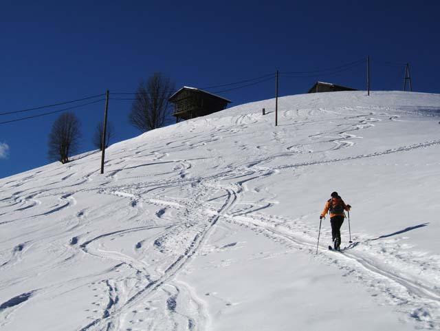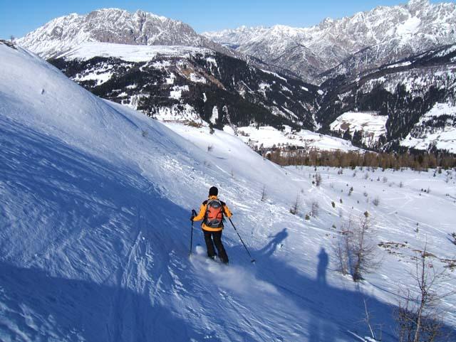 Wir waren am Sa 3.2.07 am Schwalbenkofel. Aufstieg über die übliche Route von Raut (Lesachtal). Viele Spuren aber nur wenige Leute unterwegs. Im Wald gut ausgefahren, oben noch etwas Pulver und in Kammnähe tragender Windharsch. Insgesamt gute Verhältnisse und vor allem viel Schnee!