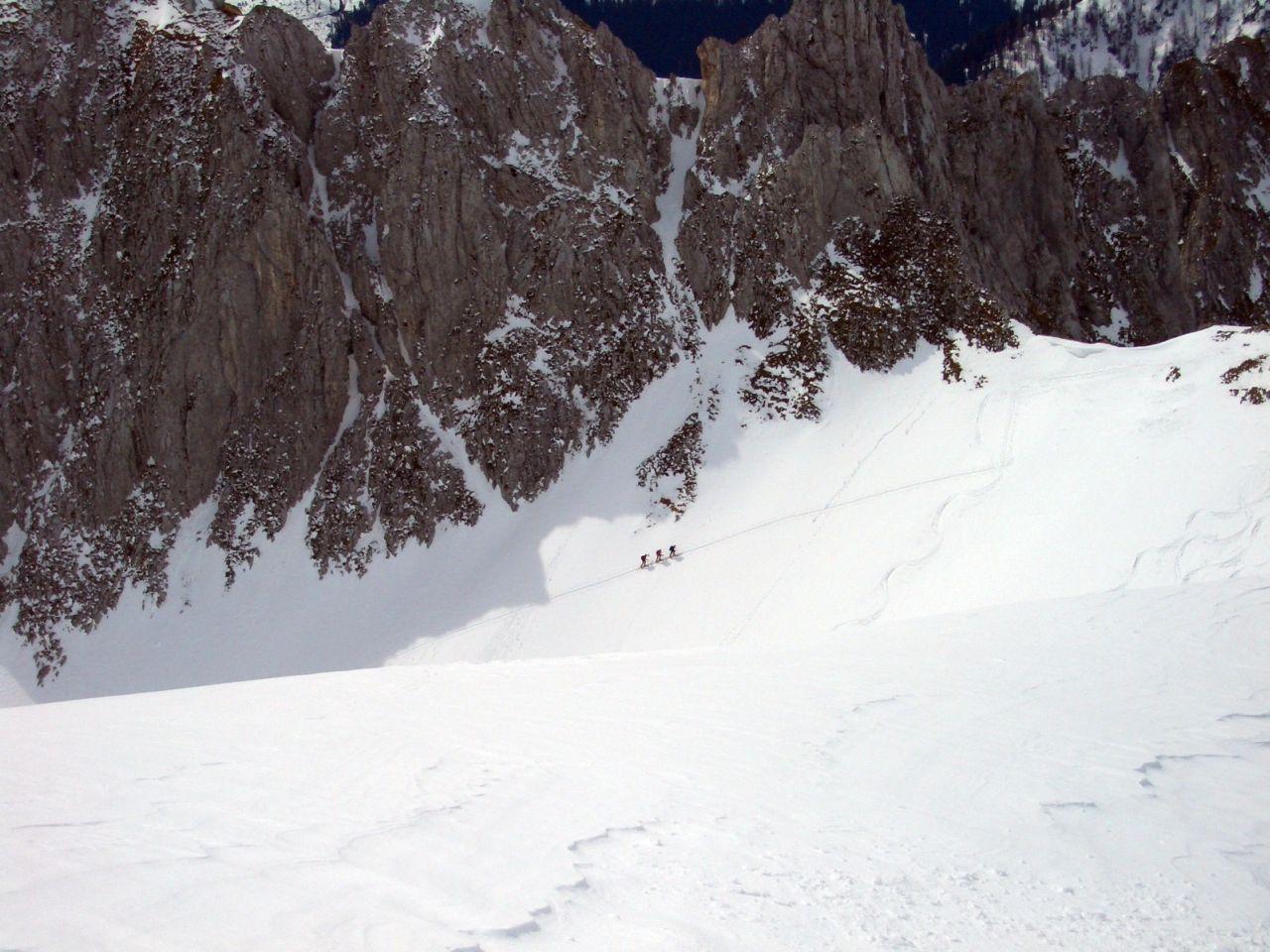 Komplett Wasserfall ist noch zu gefährlich, es sind noch einige Lawinen nicht abgegangen.