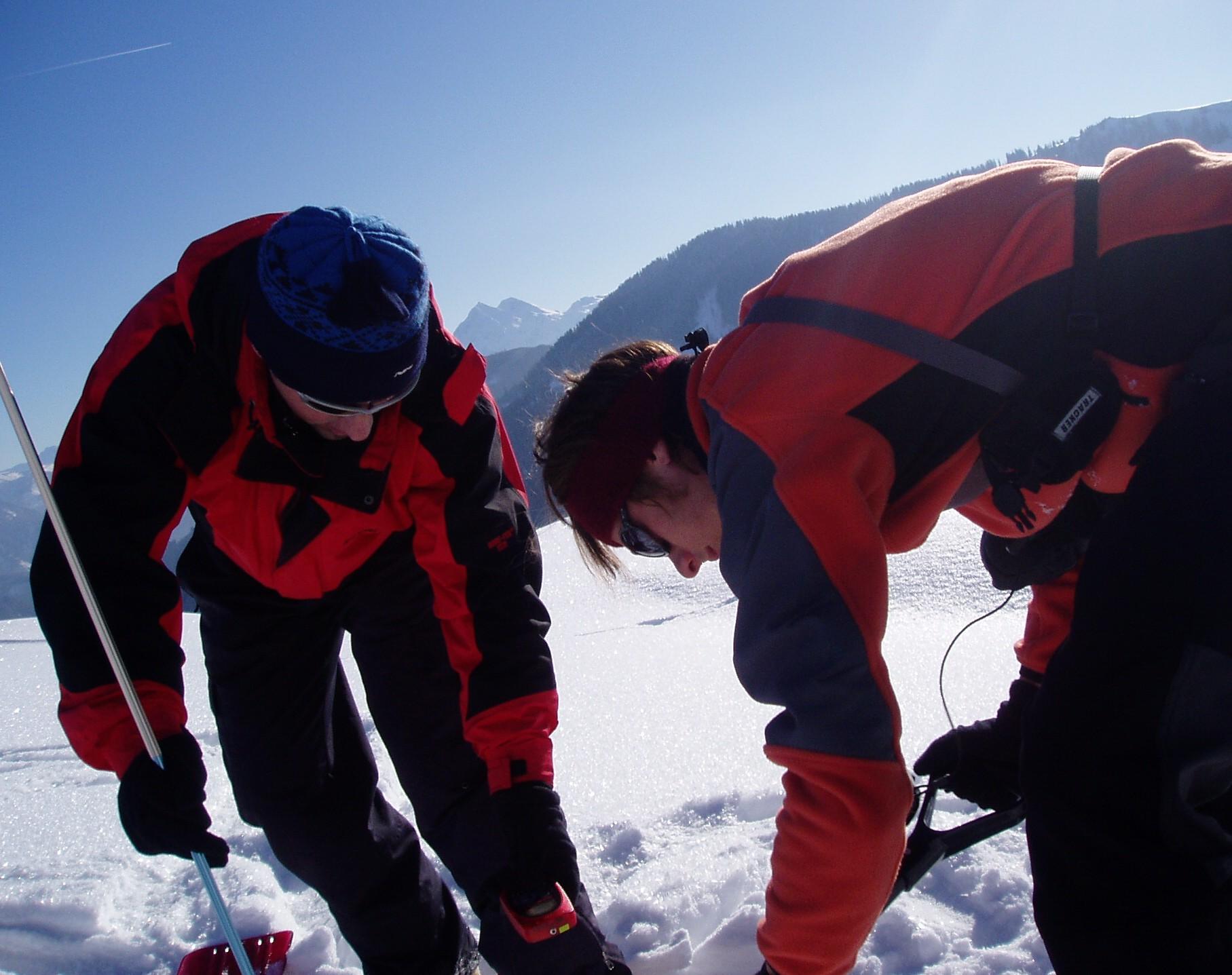 Wir haben es uns in der Nähe der Mühlechenalm gemütlich gemacht, obwohl wir für den Ernstfall trainierten. Eine Suchaktion mit Pieps, Sonde und Schaufel muss in Fleisch und Blut übergehen, damit sie dann im Notfall vielleicht wirklich funktioniert. Man kann nur eines machen: So oft wie möglich probieren und trainieren und hoffen, dass man nie in eine solche Situation kommt.
