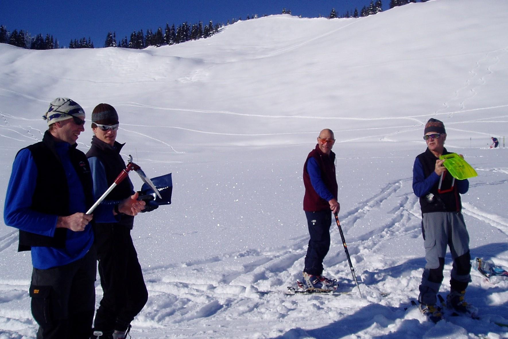 Da Wörgötter Peter hat wie jedes Jahr wieder einen Lawinenkurs für alle interessierten Tourengeher organisiert und so haben wir uns am Morgen Richtung Hintermoos aufgemacht. Die Jungmannschaft hat sich gleich den Christoph geschnappt, der uns die neuesten Such-, Sondier- und Ausgrab-Tipps geben sollte.