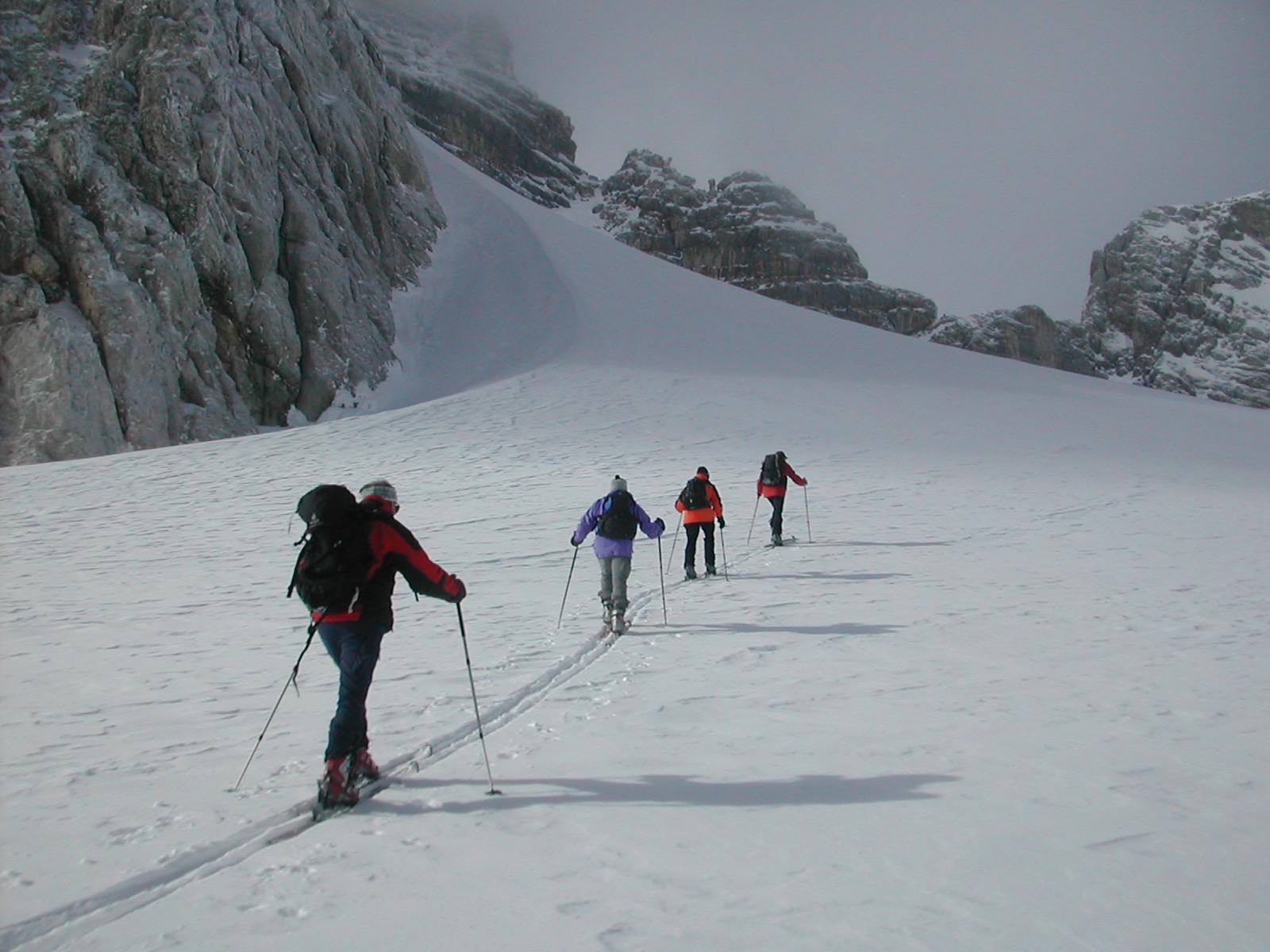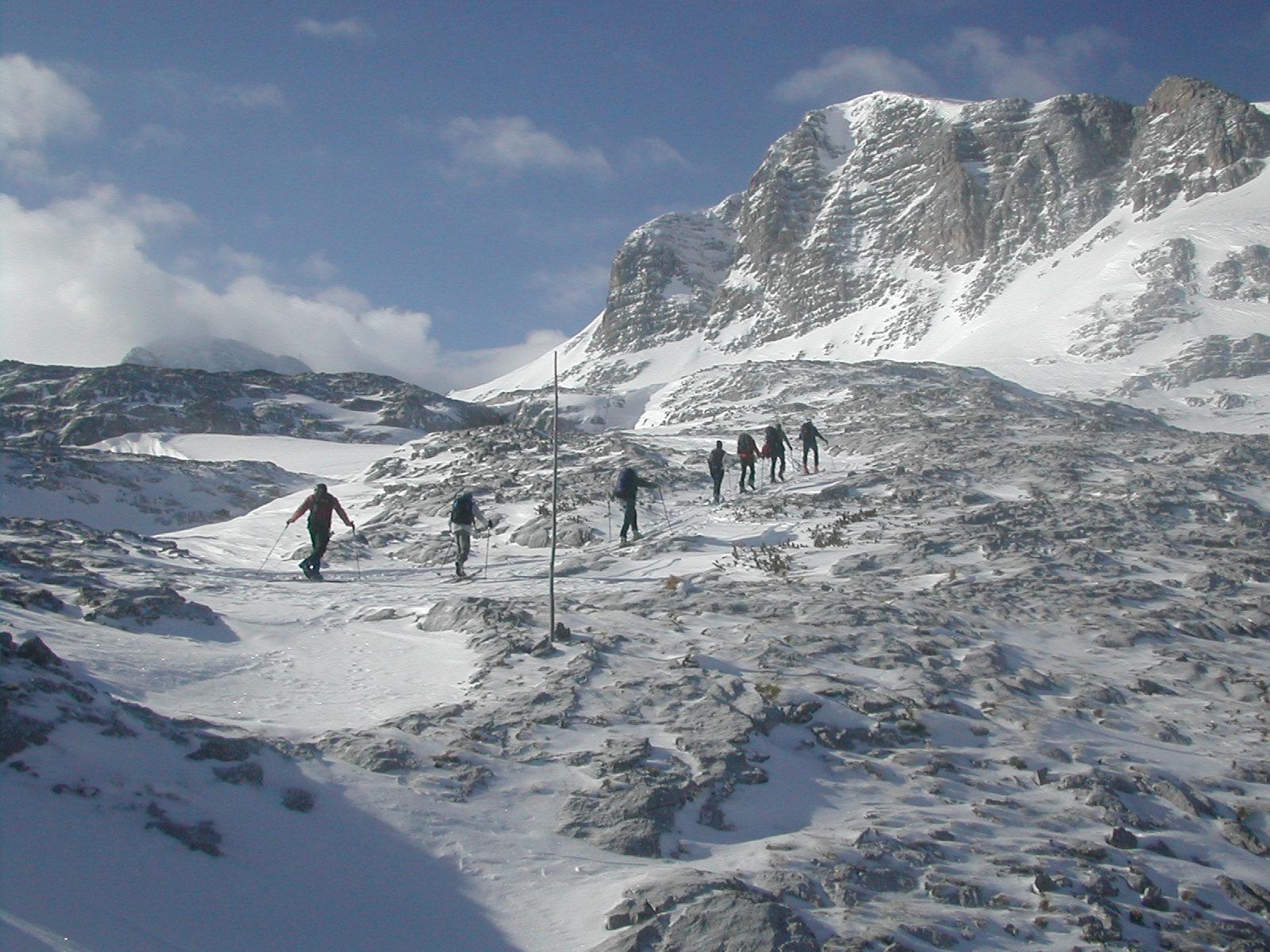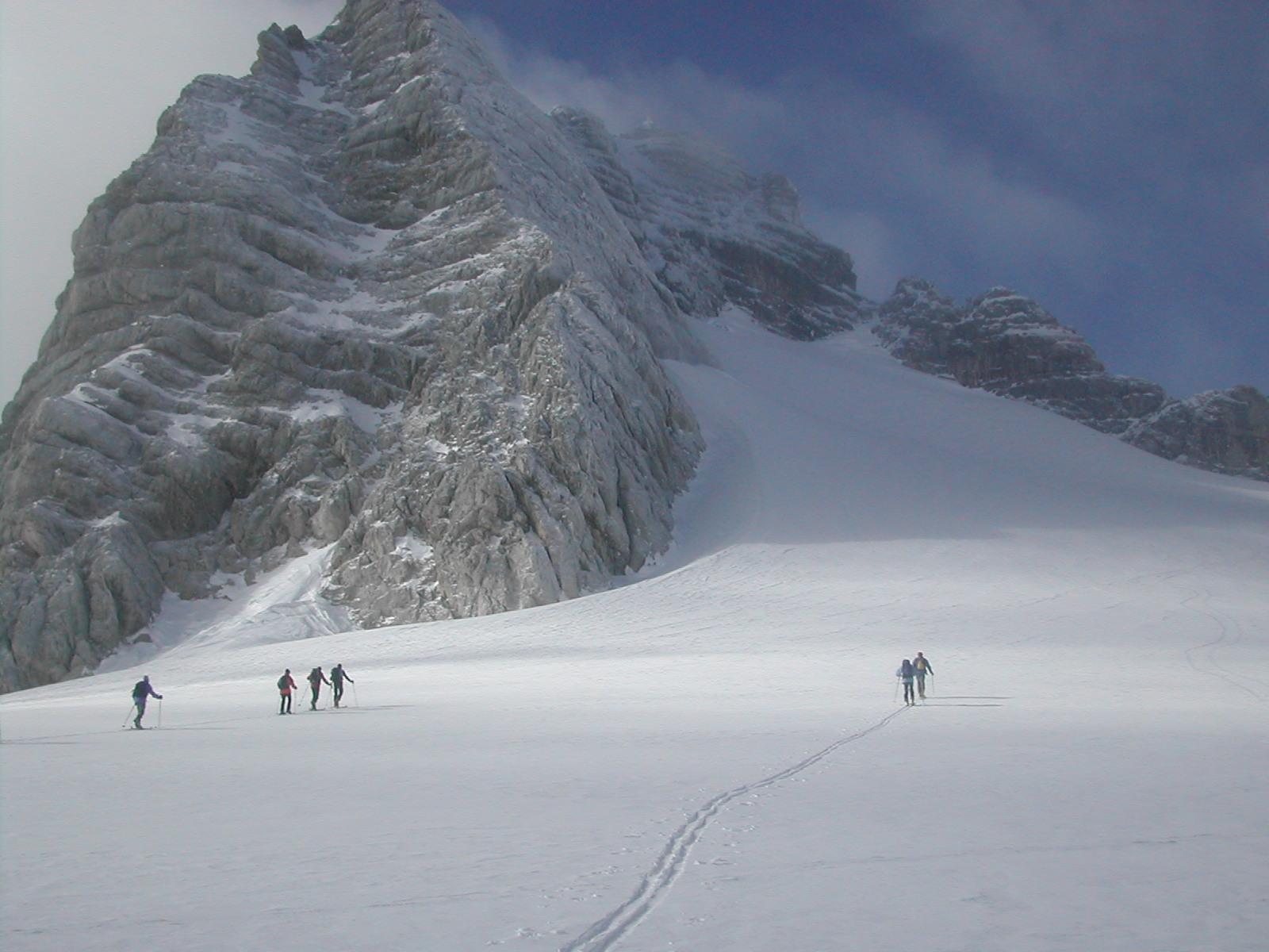 Ging heute mit einer größeren Gruppe vom Oberfeld über den Rumpler zum Gjaidsteinsattel. Während des Anstiegs zur Randkluft versteckte sich der Dachsteingipfel hinter ein graues Tuch, unsere Gipfelträume waren daher im Nu ausgeträumt. no Problem! Es folgte eine Pulverorgie (dazwischen Gegenanstieg zum Hohen Trog) durch das Weittal ins Hallstätter Echerntal, die ihresgleichen sucht.