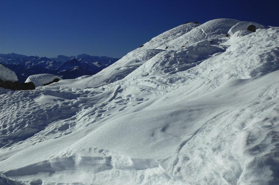 12.12.04 Aufstieg vom Arthurhaus zur Mandlwand (S). Scheedecke: Bruchharsch,Harsch, Firn, teilweise windgepreßt, schattseitig kleine Flächen Pulver, sehr viele alte harte Abfahrtsspuren.