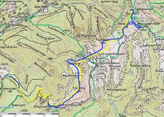 Moosangerl-Rundtour Osterhorngruppe Man muss nicht unbedingt durch die enge Röhre am Pass Lueg, da auch die Osterhorngruppe noch (Wetterumstellung voraussichtlich in 10 Tagen, um den 20. Dezemeber!) km2-weise Firn produziert. Hatte keinen Photoapparat dabei. Trotzdem eine Tourbeschreibung, weil die Verhältnisse momentan so toll sind und die Moosangerltour meiner Meinung nach bei der derzeitigen Lage (wo kann ich?) geradezu ein Leckerbissen ist. Tour: St.Kolomann - Mautschranken - Trattberg - Frunstberg - Hoher First - Dürlstein - Moosangerlalm - Hoher First - Frunstberg - .... zum Auto Verhältnisse: Wetter: kurzärmelig, Sonnenschutzfaktor 15, im Norden erkennt man den Böhmerwald Schnee zum Fahren: nur 5min tragen, sonnseitig kompakter Schmelzharsch der prächtig auffirnt, schattseitig gesetzter Pulver ohne Kruste, dazwischen natürlich auch windpresst; Schneelage insgesamt ausreichend bis gut Gefahrenzeichen: keine für Tourengeher relevanten; stabile Frühjahrsbedingungen; letzten schneefall rund um den 24.nov, an 4 bis 5 stellen ist auf den ganz steilen grashängen die schneedecke abgeglitten, zum teil wunderschön inneinander geschoben; ist großteils wahrscheinlich noch im november mit der ersten erwärmung und setzung passiert, keine frischen Abgänge Highlights: Abwechslungsreichens Auf und Ab - 5 bis 7mal auffellen; 4 Firnabfahrten, jeweils über 200 bis 300 Hm, 3 davon über weite und unbefahrene Flächen mit einer tollen Neigung; praktische alleine, am schönsten ist der Abschnitt Trattberg bis Dürlstein/Moosangerl Ich denke der momentane Zustand hält auch noch übers Wochenende hinaus an, am ehesten geht der Schnee im Bereich der Enzianhütte aus, kann man aber problemlos umgehen. ;--)bernd
