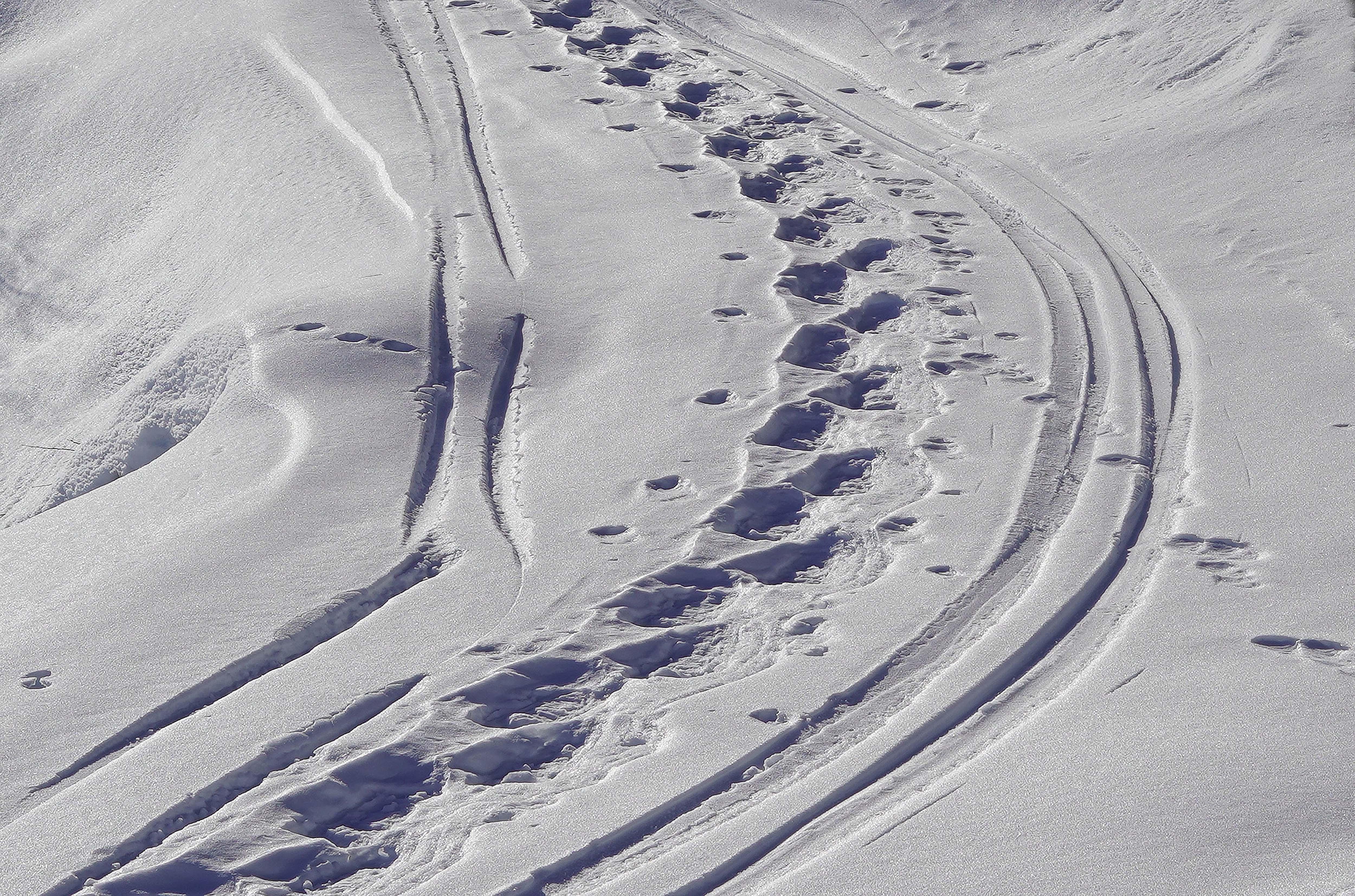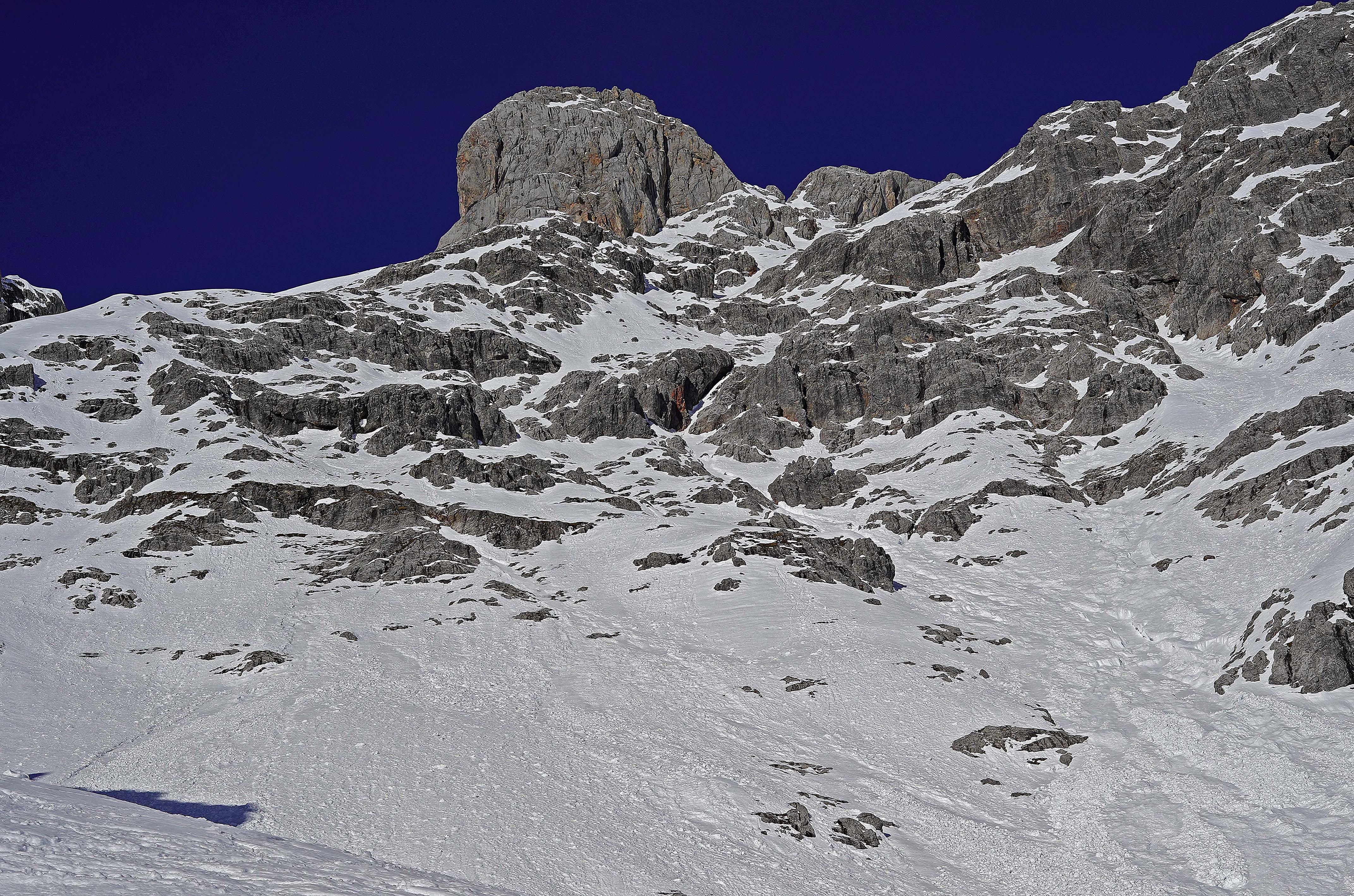 Glasklarer, windstiller und warmer Tag --im Gegensatz zu neulich bei beengendem Nebel--man fühlt sich wohl, genießt Sonne und Umfeld. Auf tragender Schneedecke ca.10 cm Auflage die nicht mehr Pulver ist aber auch noch nicht so der richtige Firn. Es gibt schon eine Menge Spuren, alle mehr oder weniger oberflächlich, kein Problem bei der Abfahrt; Knollenbildung erst so ab 2000 m, eine Lawine erstreckt sich bis zum Hausbalfen.(Jausenstein 1921m). Wer es etwas unberührter will sollte sich in den Ostkessel begeben.