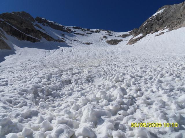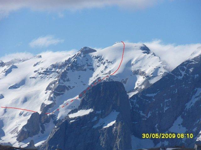 Um 08:50 mit Ski direkt vom Lago di Fedaia zuerst auf Piste bis Rif. Pian dei Fiacconi (Bergstation der Korbseilbahn, geht sicher noch zwei Wochen ohne nennenswertes skitragen). Dann rechts querend zum Einstieg der Marmolada Nordwand. Diese heute mal sein gelassen und rechts über Nordostschulter ausweichend und Nordwestflanke problemlos zur Marmolada Punta Penia, 3343m. In der steilen Nordwestflanke zum Gipfel ist es auch am Mittag bei Sonne noch sehr hart (Harscheisen!). Abfahrt über die Nordwestflanke um ca. 12:30. Dann über genial zu fahrenden tiefen Sumpf über die Nordostschulter zum Auslaufbereich der Nordwand. Ohne Gegenanstieg unter Rif. Pian dei Fiacconi querend und ab zu Onkel Toms Hütte am Lago di Fedaia. Sehr lohnende Tour in einer sehr schönen Gegend.