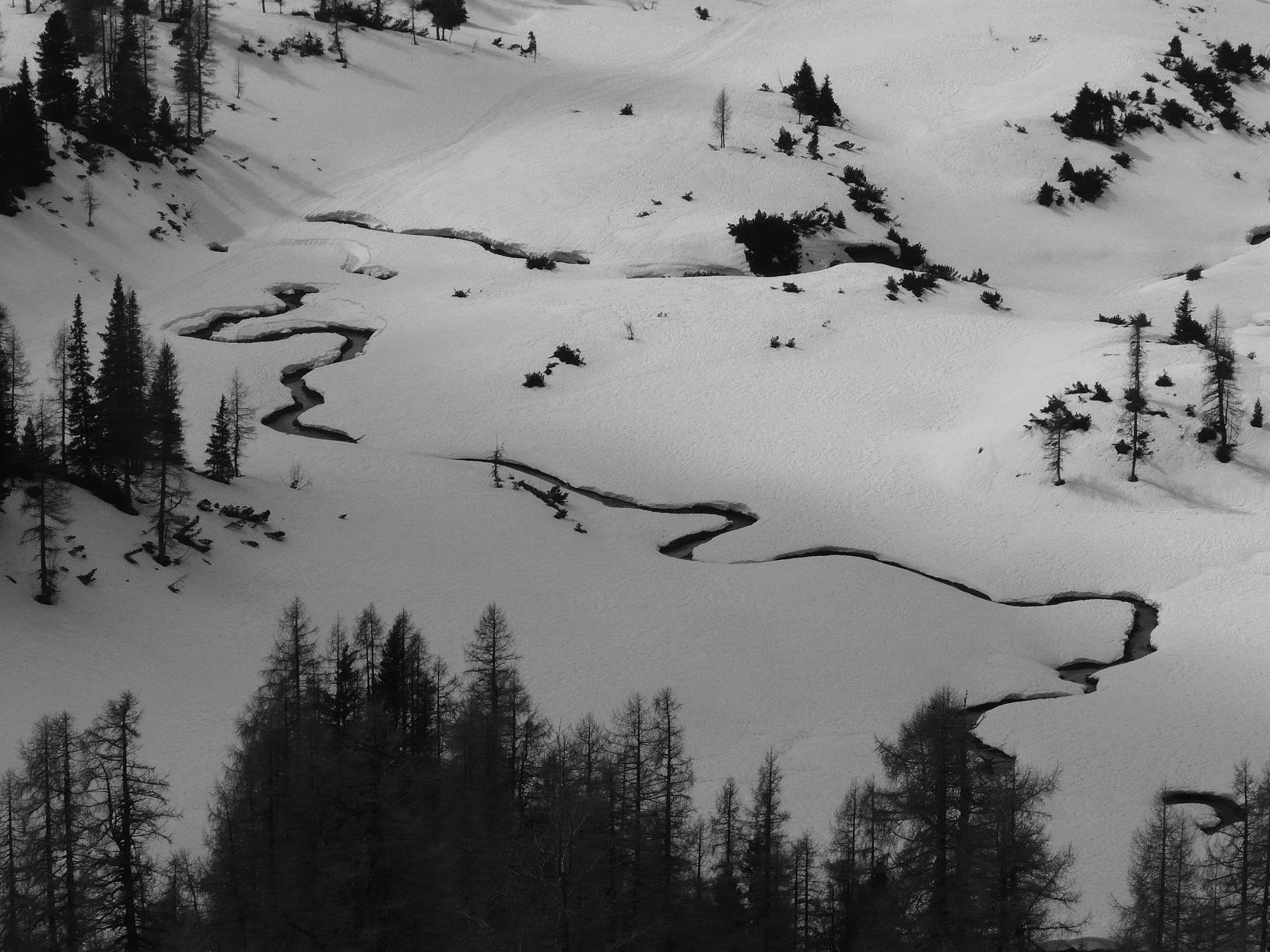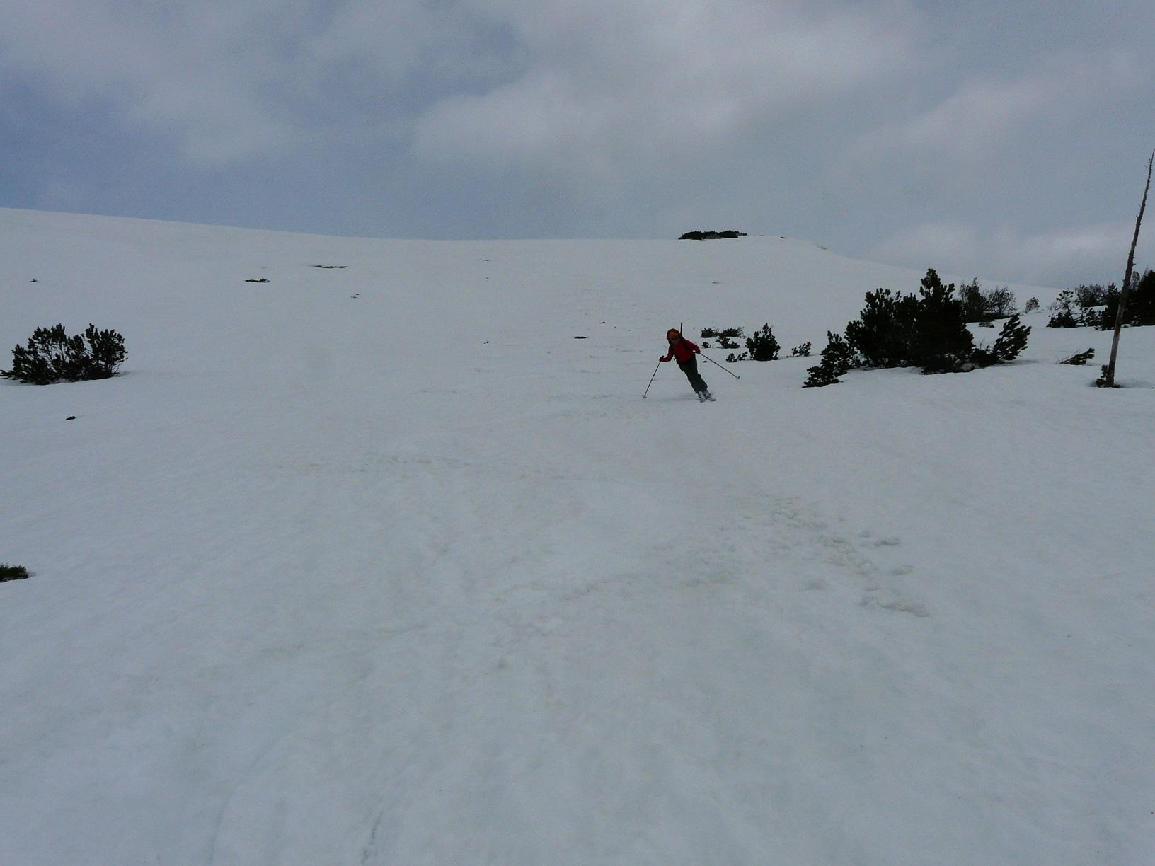 Schneeverhältnisse: sehr kompakte Schneedecke, durchwegs Firn 2-10cm, niemals Sumpf trotz fortgeschrittener Tageszeit, heute keinen Menschen getroffen.