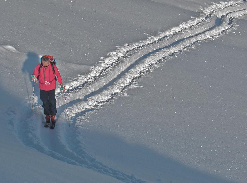 Mit Hans Neumayer Richtung Schwalbenwand, Start in Unterberg, herrlich-klassisches Winterwetter, gute, stabile Verhältnisse.